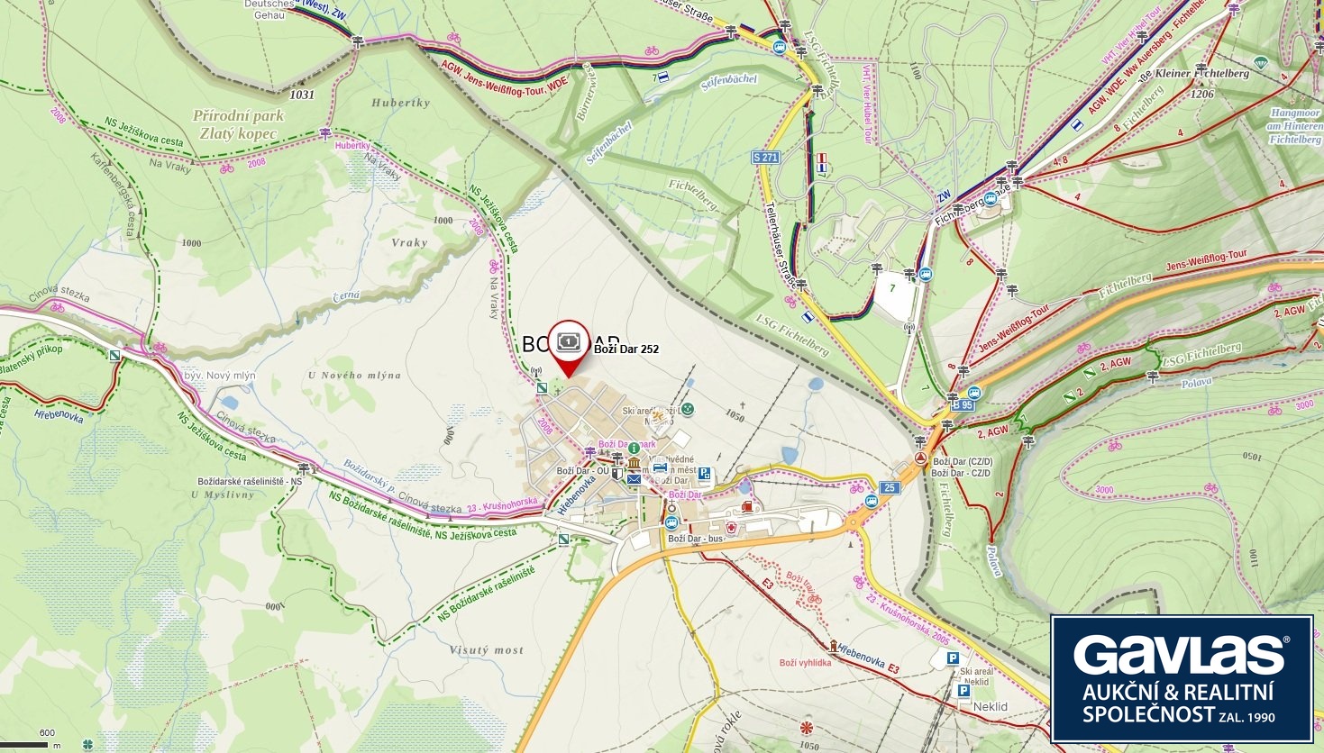 Boží Dar - ráj zimních sportů, procházek a cyklistiky přímo za dveřmi: pár metrů od domu naběhnete na běžkařskou Krušnohorskou magistrálu (120 km upravovaných tras), když není sníh najedete na stejném místě na cyklostezku, nebo se půjdete projít malebnou stezkou Božídarského rašeliniště. Celoročně můžete vzít své ratolesti na dobrodružnou Ježíškovu cestu. To vše máte pár kroků od domu s nádherným výhledem.