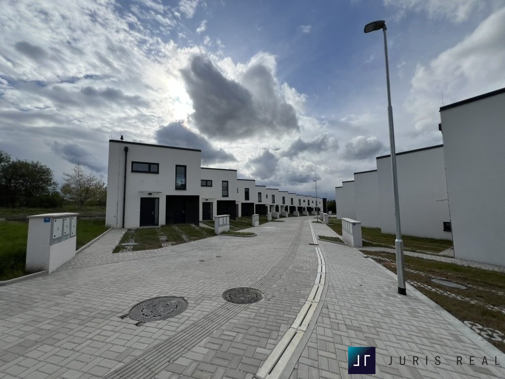 Řadové domy o dispozici 5+KK jsou navrženy tak, aby nabízely maximální komfort a prostor. V přízemí se nachází prostorný obývací pokoj s otevřenou kuchyní a jídelnou, který má přímý vstup na terasu a zahradu, ideální pro relaxaci a rodinné chvíle. Součástí přízemí je také vstupní hala, toaleta, technická místnost, chodba a sklad pro uskladnění sezónních věcí, který je přístupný z venkovního parkovacího stání.