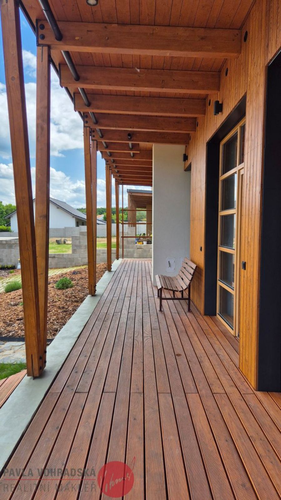 Okolo domu je velká terasa 54 m se vstupem přímo ze všech pokojů