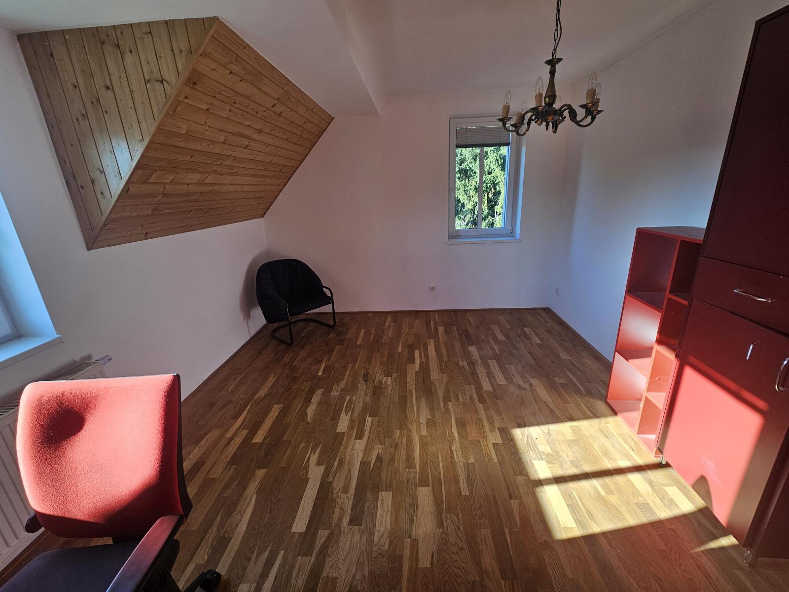 Pronájem krásného mezonetového bytu 4+kk, 160m2, který se rozkládá v podkroví a prvním patře rodinného domu. V bytě se nachází 3 oddělené pokoje (podkrovní ložnice, dětský pokoj a ložnice).