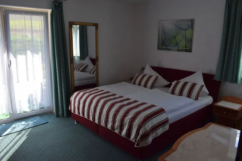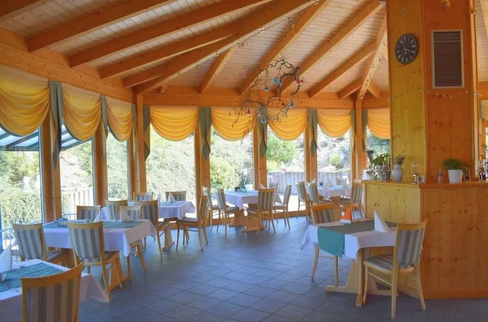 Přední restaurace sloužící jako snídaňová restaurace nabízí další venkovní posezení s krásným výhledem na Sybilenbad a Chebský les. K nemovitosti patři 2 garáže, zahradní domek s nadzemním bazénem , který se může předělat na wellnes zónu a 15 parkovacích míst.
