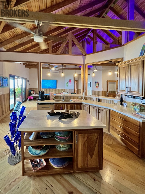Je tu skvělý venkovní prostor s nekonečným bazénem se slanou vodou, hned vedle hlavní ložnice a TIKI bar. Prádelna s pračkou a sušičkou, velká šatna. Nadměrná garáž se dvěma stáními, s chytrým otvíračem dveří, velkým pracovním stolem, je zde take několik polic a hluboký dřez. Pod domem je masivní prostor využívaný jako dílna, jsou zde také 3 další skladovací prostory, osobní, mechanický, a bazénový ve kterém je umístěné veškeré, špičkové bazénové Pentair zařízení. V pracovní části pod domem je také vana. Celá nemovitost je oplocena řetězovým plotem, vaše zvířata mají spoustu prostoru a bezpečí na to, aby se mohla toulat po pozemku.