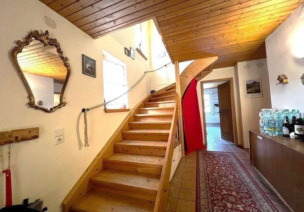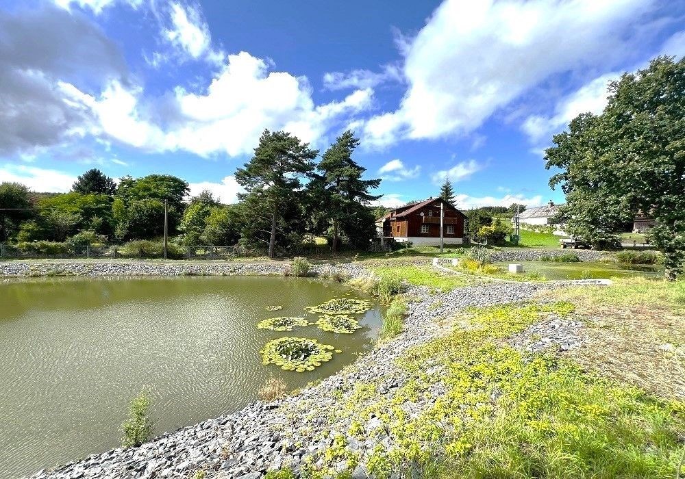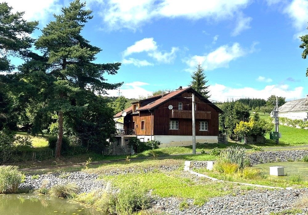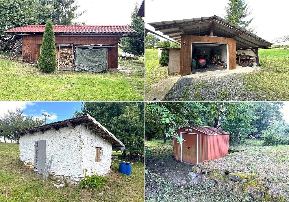Samostatně stojící dům s kompletním provozním příslušenstvím a zázemím, vedlejšími stavbami (garáž, kolna, sklad) a navazujícími pozemky rozlehlou zahradou o celkové výměře 2.760 m2 v klidné okrajové části malé obce Čečín v blízkosti CHKO Český Les. Přízemní, částečně podsklepený RD o dispozici obytných prostor 5+1 s terasou a příslušenstvím ve dvou nadzemních podlažích (1.NP+podkroví) s kompletním provozním zázemím a vybavením. Objekt původního vesnického domu byl v průběhu let 19952000 nově zbudován na původních základech a kompletně přestavěn, modernizován, adaptován do současné podoby a doposud užíván k sezónnímu rekreačnímu bydlení, řádně udržován a spravován, kompletně zařízen, připraven k okamžitému užívání a trvalému či rekreačnímu bydlení dle představ nového vlastníka. ENB třída: „G“ průkaz nezpracován. Na objekt RD navazují vlastní pozemky s vedlejšími drobnými stavbami, zpevněnými venkovními úpravami, udržovaným travním porostem, ovocnými a okrasnými dřevinami s klidovou, užitkovou a manipulační plochou s vlastním vjezdem, tvořící jeden uzavřený oplocený soubor nemovitostí venkovské usedlosti. Nemovitosti jsou situovány v mírně svažitém terénu s orientací pozemků na jihovýchod, navazují po celé šíři na zpevněnou příjezdovou komunikaci s vjezdem a vstupem v blízkosti malých vodních ploch a veřejného okrasného prostranství s dobrou dopravní dostupností. Nabízené nemovitosti jsou vhodné a využitelné k trvalému rodinnému bydlení nebo k celoroční rodinné rekreaci v klidné přírodní lokalitě malé obce Čečín s řídkou zástavbou okolních vesnických stavení, v obci bez základní občanské vybavenosti s následnou dostupností služeb a infrastruktury v cca 1,5 km vzdáleném městečku Bělá nad Radbuzou, 13 km od hraničního přechodu CZ/SRNŽelezná a cca 15 km ke sjezdu na dálnici D5. Předností nabízených nemovitostí je lokace nemovitostí v klidné okrajové části obce v přírodní venkovské krajině navazující na zemědělské plochy pastvin a lesů v blízkosti pohraniční oblasti CHKO Český Les, velikost, dispozice, technický stav a provozní vybavenost objektu RD, celková rozloha pozemků a možnost okamžitého užívání a bydlení. Dispozice: Sklep externí vstup, 2x skladovací a provozní prostor, kotelna, technické zázemí. Přízemí vstupní terasa, vstup, předsíň, kuchyně, jídelna, obytná místnost, koupelna (vana, sprchový kout, umyvadlo, WC), schodiště. Podkroví schodiště, obytná hala, 3x ložnice, koupelna (sprchový kout, umyvadlo, WC) + skladovací podkrovní prostor. Přístup z veřejné zpevněné komunikace (vstup + vjezd), elektřina (220/380 V), napojeno na společný zdroj vody společná studna, odkanalizováno přes septik s přepadem, bez napojení na rozvod plynu a telekomunikační rozvody, internet air. Vytápění: centrální elektrické se solárním ohřevem + lokální na tuhá paliva s průduchy bez nucené ventilace.