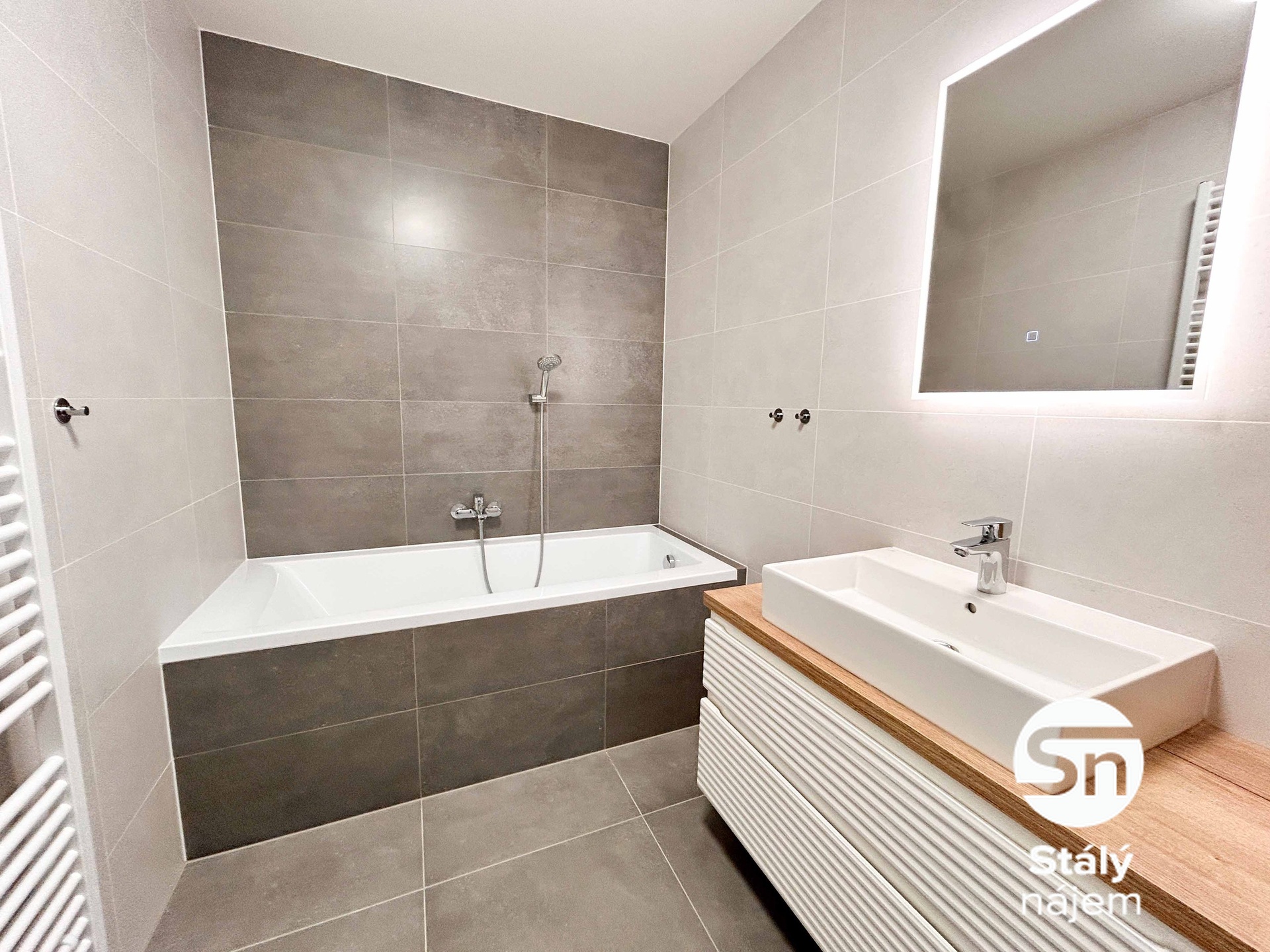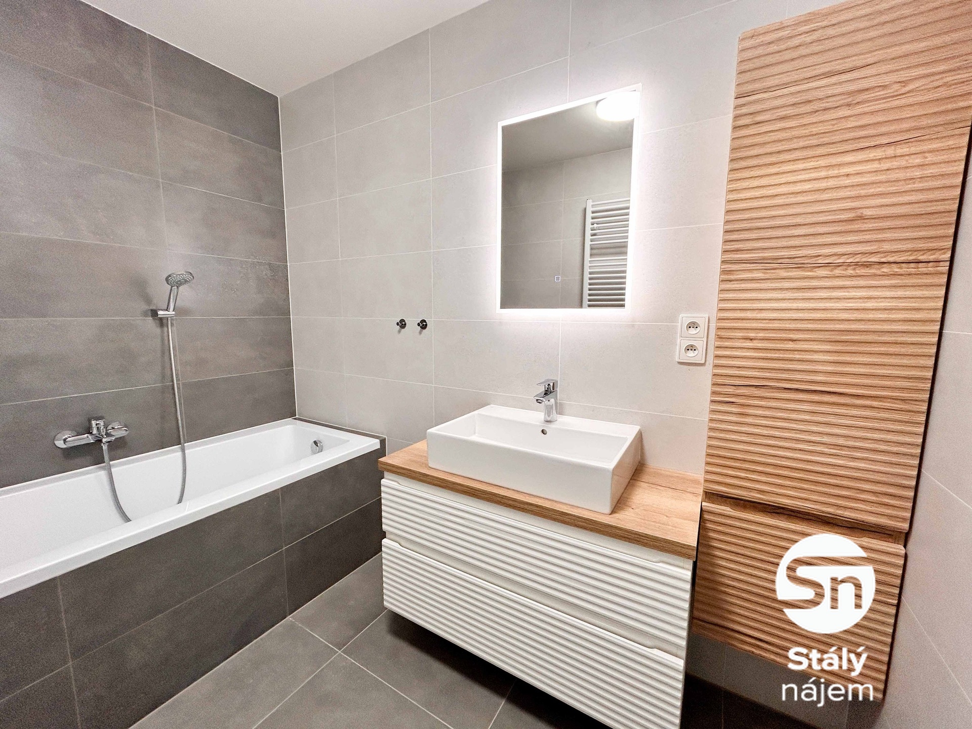 Srdcem bytu je velký obývací pokoj s plně vybavenou kuchyňskou linkou, kde najdete veškeré vestavěné spotřebiče včetně myčky, mikrovlnné trouby a indukční desky. Dále jsou zde dvě samostatné ložnice s garnýžemi a osvětlením, připravené k vašemu nastěhování. Velkou výhodou je oddělená toaleta a moderní koupelna s vanou i podsvíceným zrcadlem, přičemž v bytě nechybí ani praktická komora s přípojkou na pračku, která uvolní místo v hlavních místnostech.