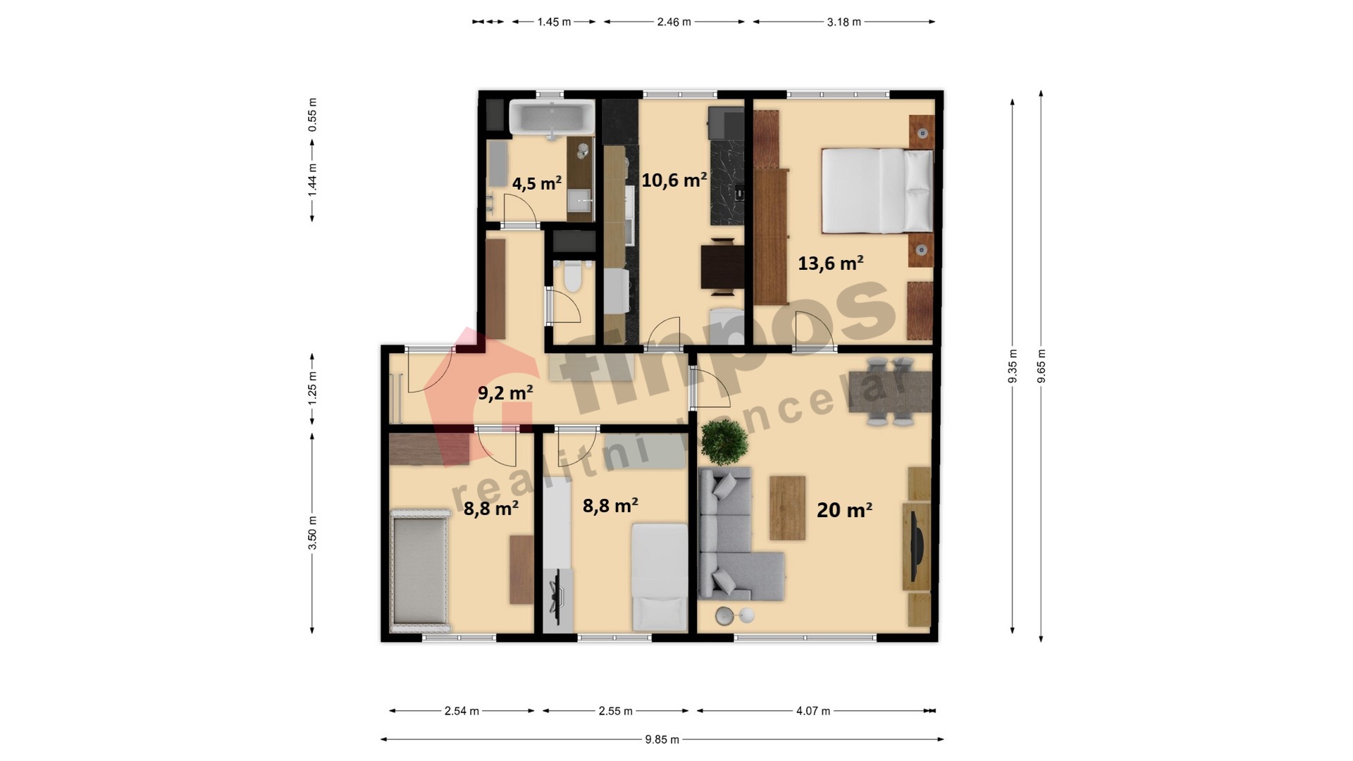 | Dispozice/podlahová plocha: | 4+1/80 m² |