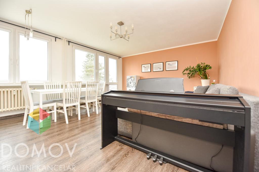 Původní dispozice 4+1 byla citlivě upravena na vzdušný a velmi komfortní 3+1, který nabízí dostatek prostoru i praktické uspořádání pro rodinné bydlení.