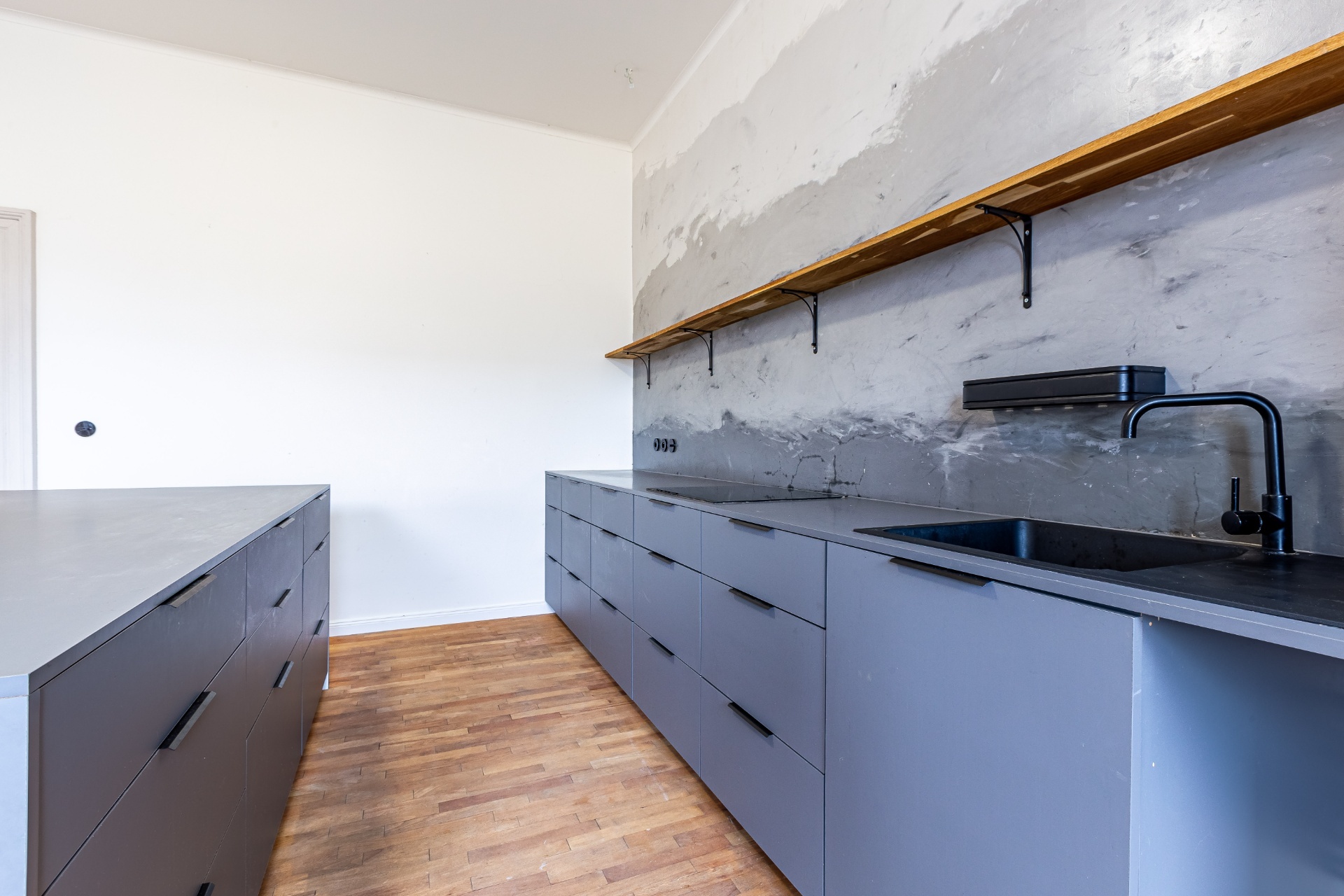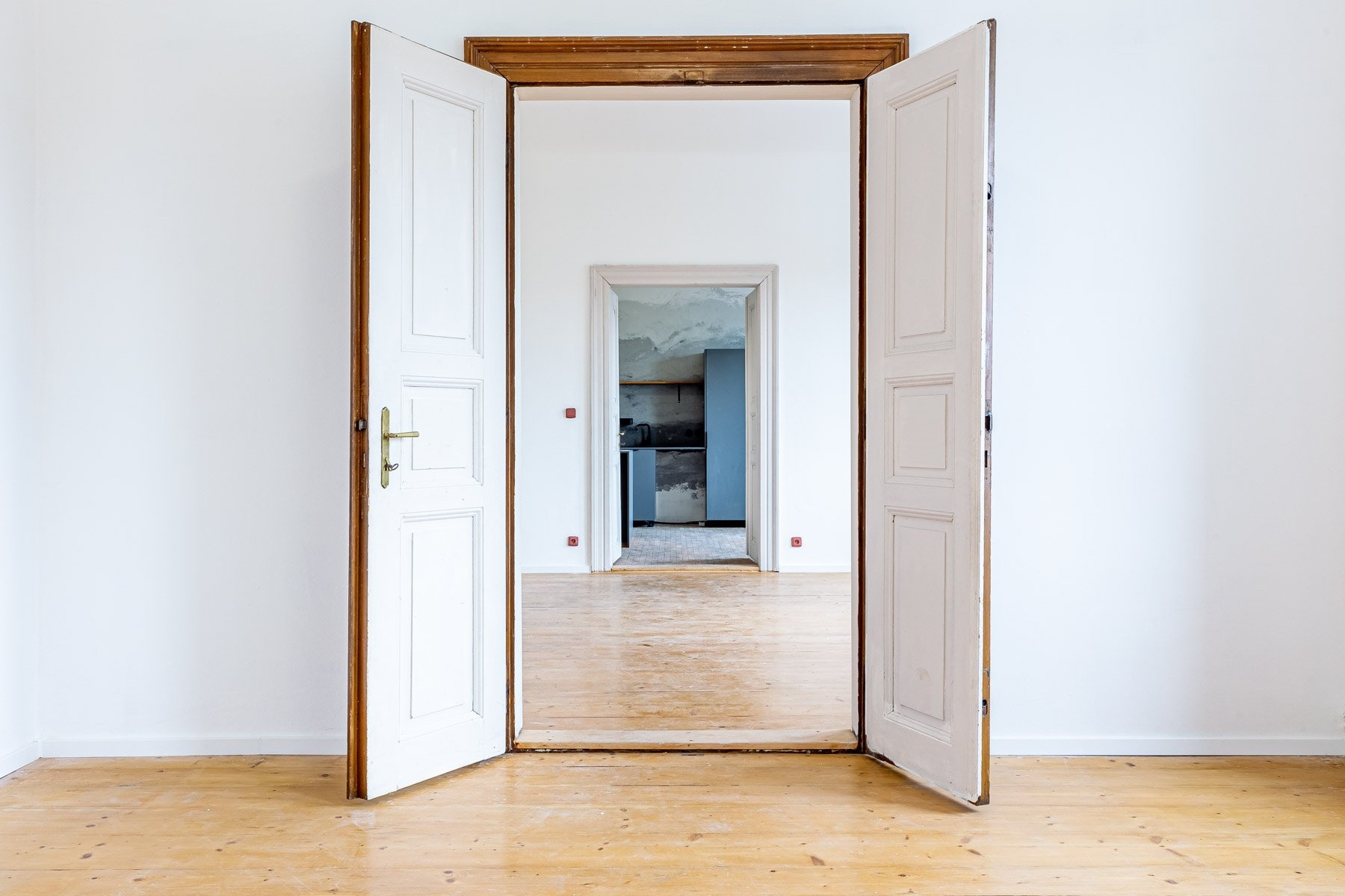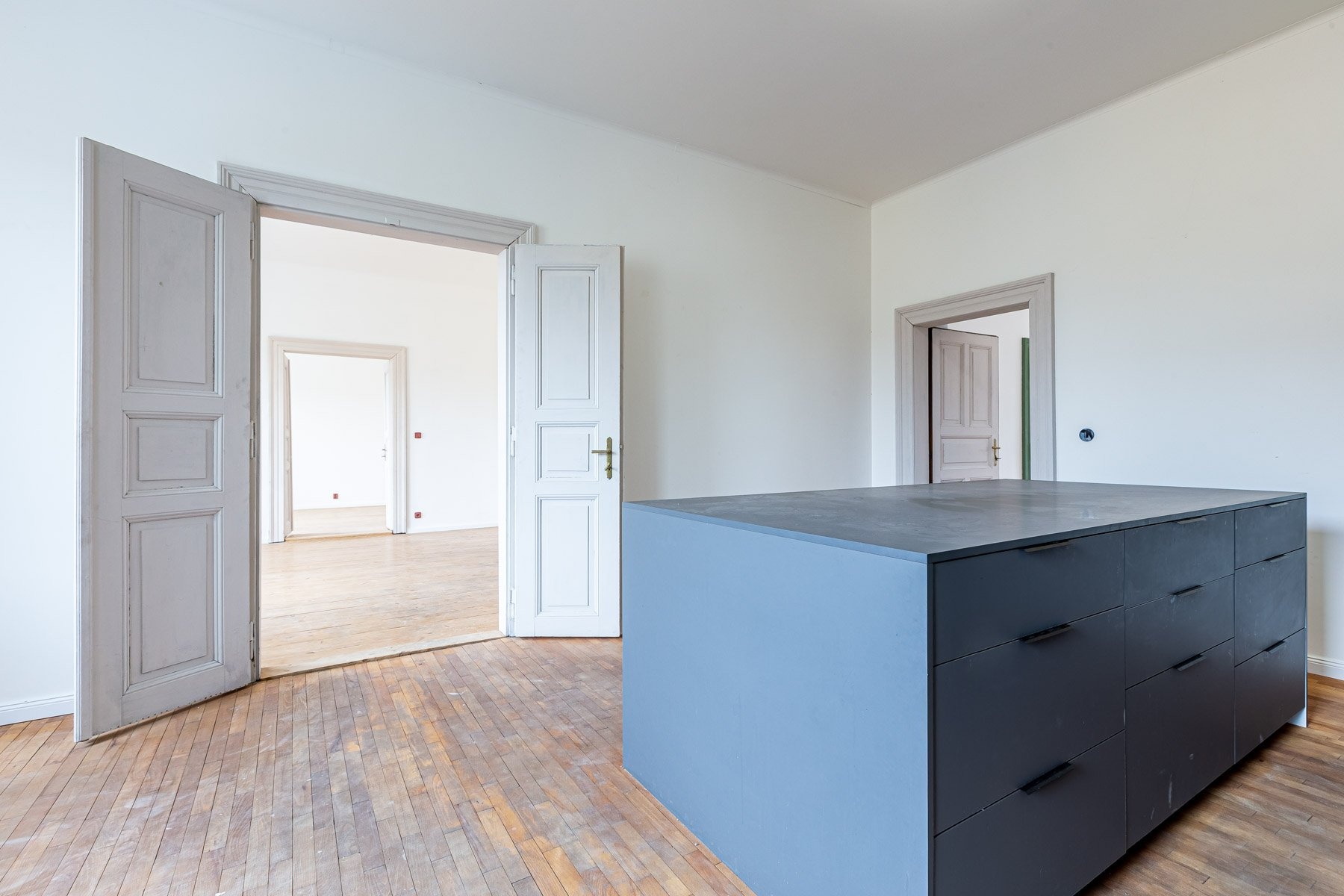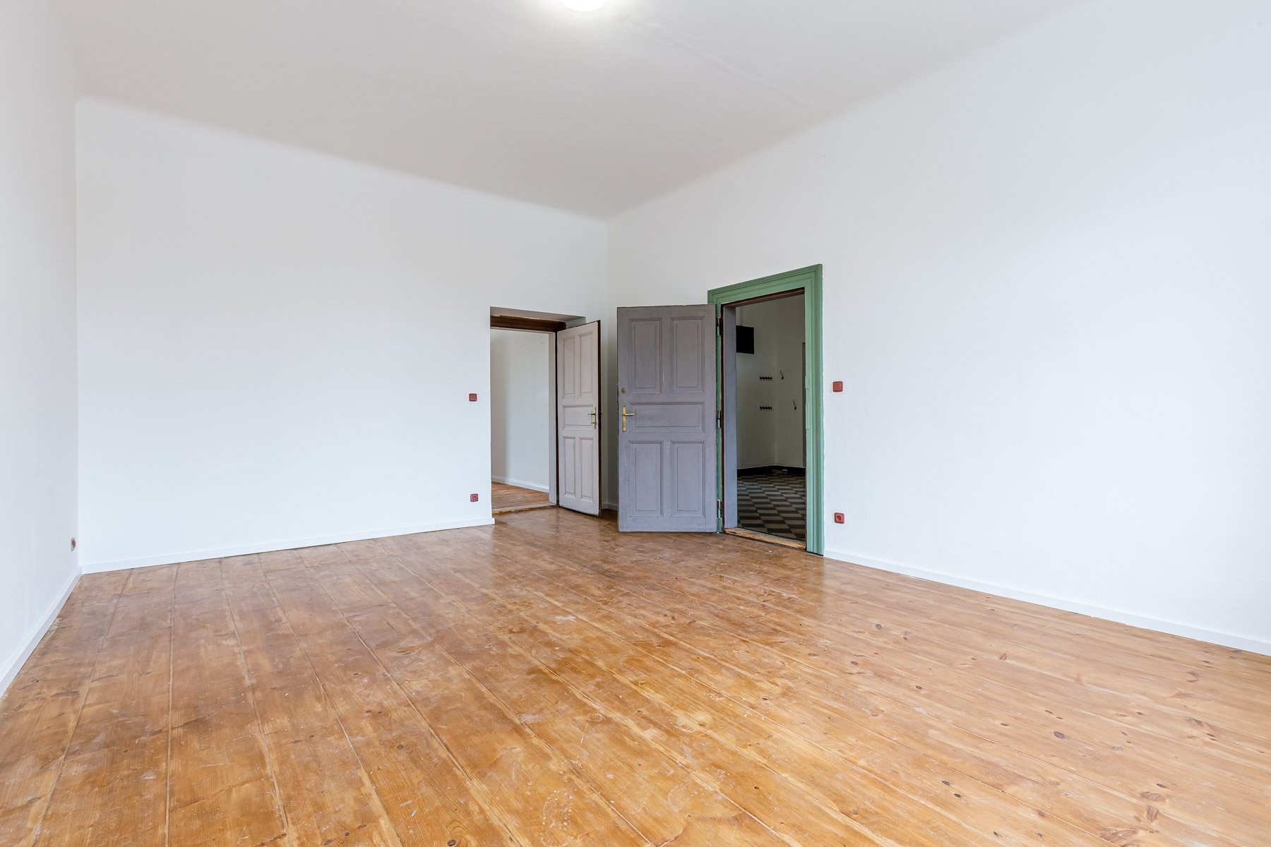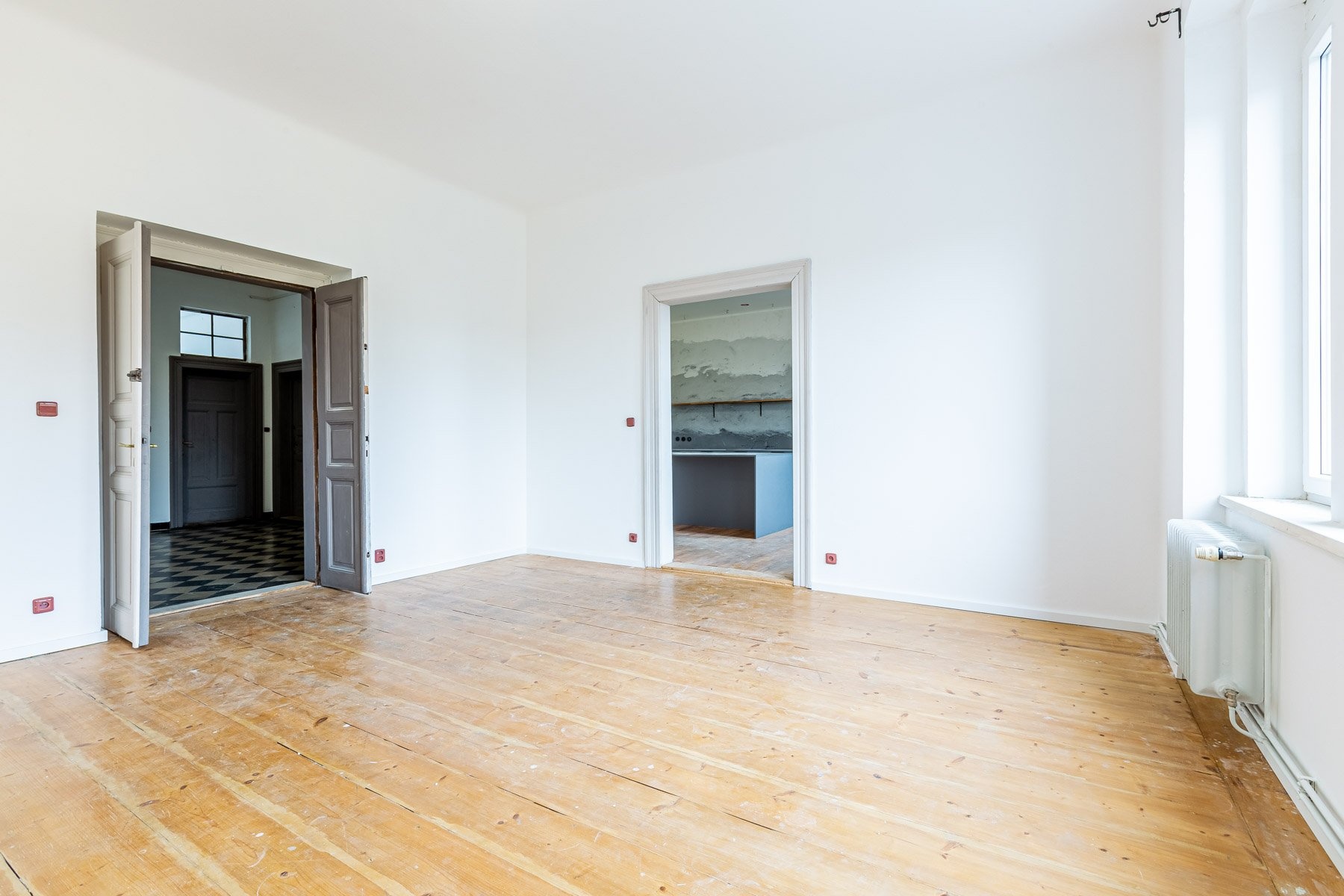 Jednotka sestává z obývacího pokoje, kuchyně, třech pokojů, koupelny, samostatného WC, komory a vstupní haly. Kuchyně je vybavena kuchyňskou linkou se spotřebiči, byt je jinak nezařízený. Místnosti jsou prostorné, navíc díky vysokým stropům velice vzdušné.
