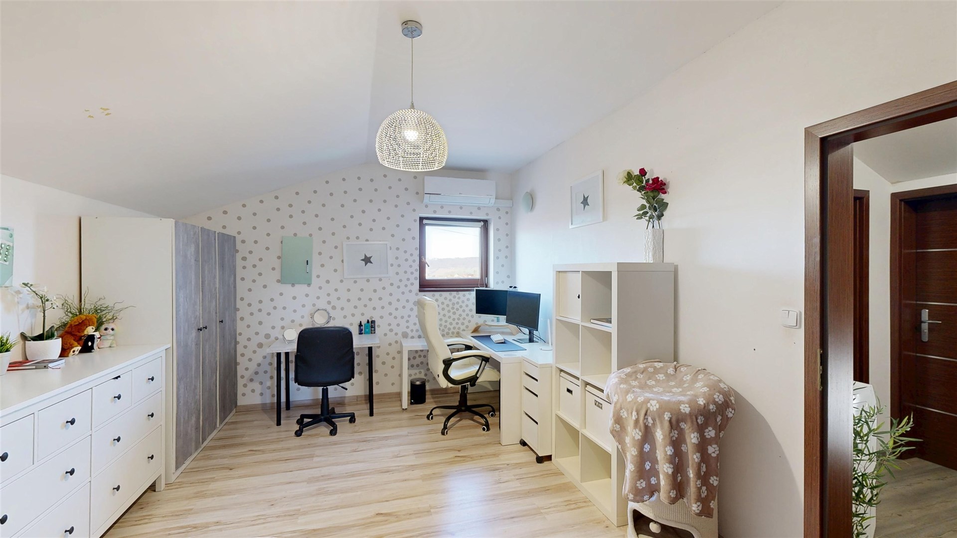 NP: tři ložnice, šatna, koupelna, chodba