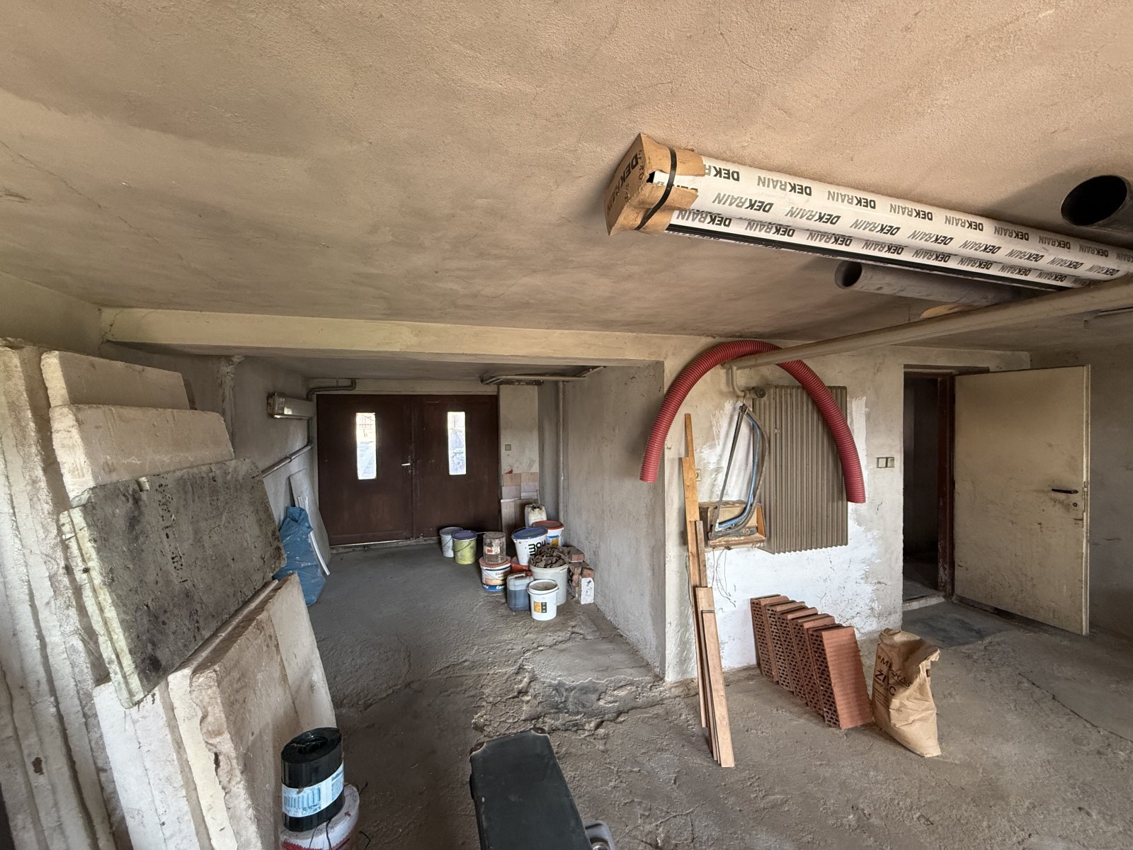 K domu náleží garáž, kotelna, prádelna a skladovací prostory, stejně jako zahrada, která poskytuje dostatek soukromí i prostoru pro odpočinek. Nemovitost je napojena na obecní vodovod i kanalizaci. Elektřina je do domu přivedena, přičemž je potřeba obnovit smluvní vztah v zákonné lhůtě. Stav domu vyžaduje dokončení – konkrétně osazení oken a dveří, realizaci rozvodů vody, elektřiny a topení včetně instalace zdroje vytápění. Právě tato fáze však dává novému majiteli možnost přizpůsobit si vše podle vlastních představ a standardů.