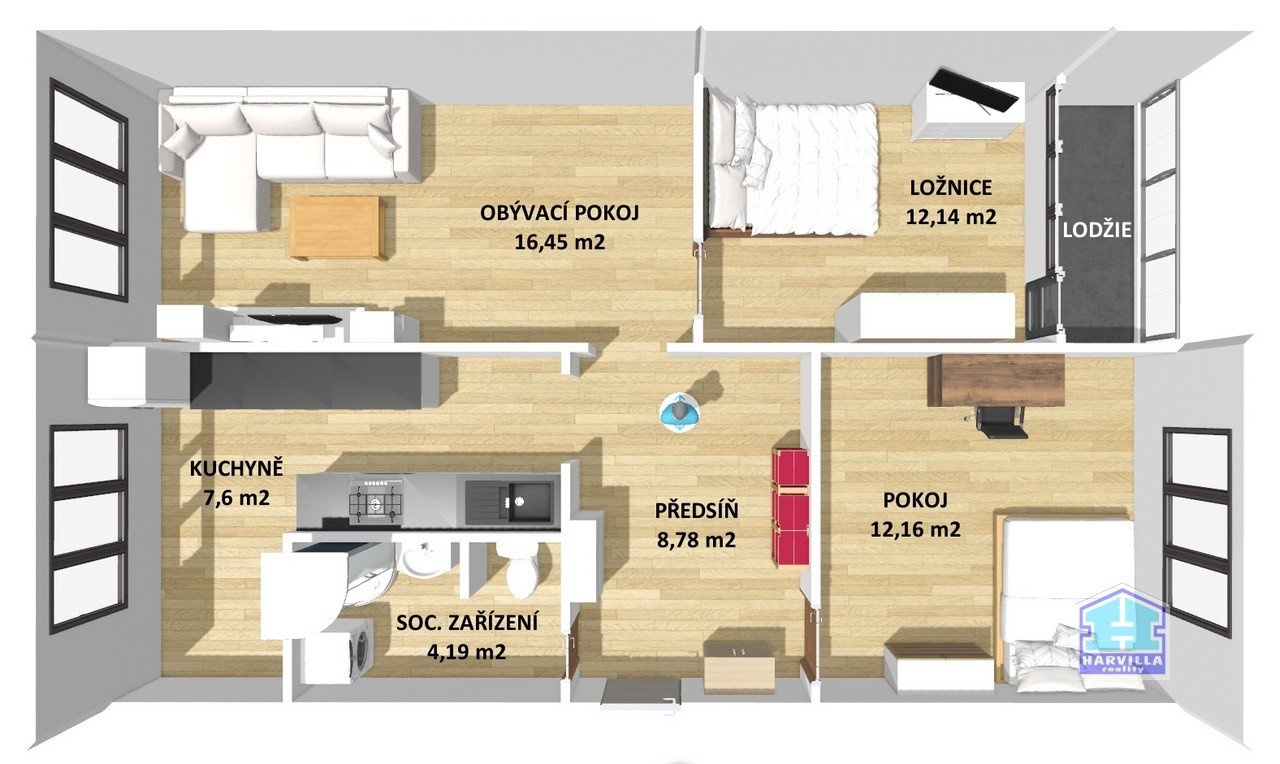 | Dispozice/podlahová plocha: | 3+1/62 m² |