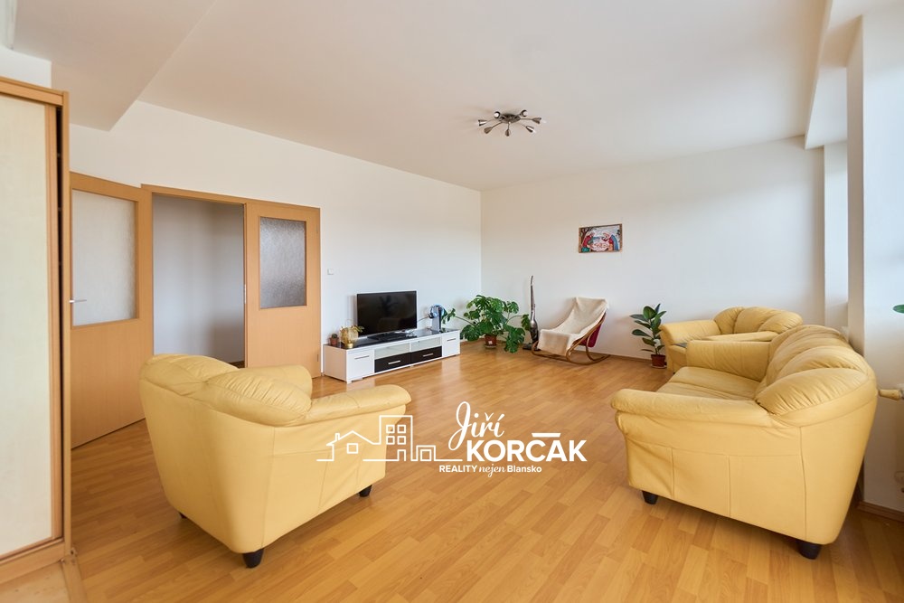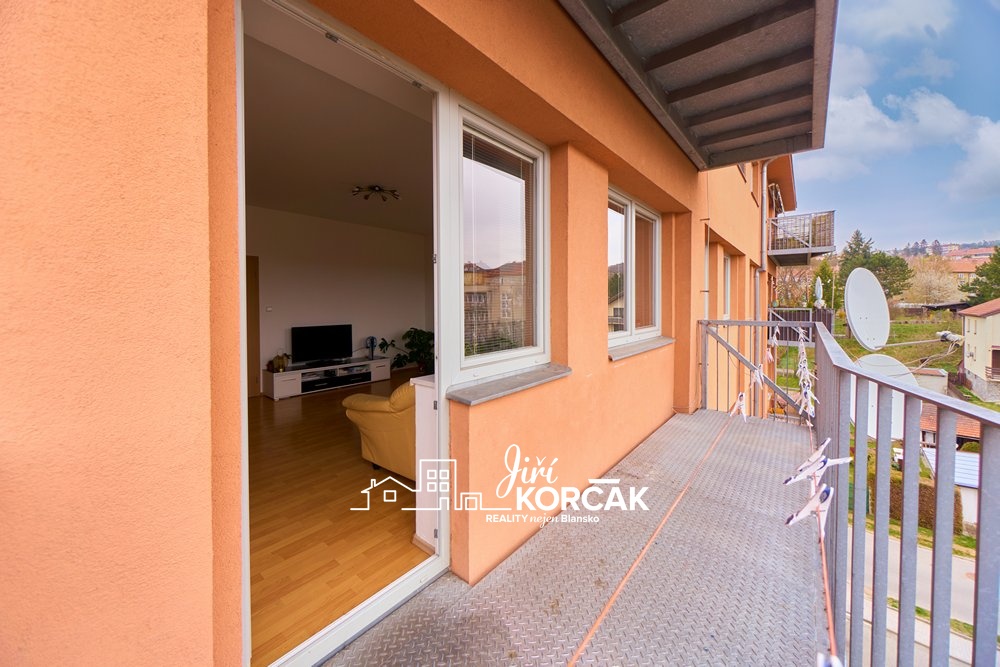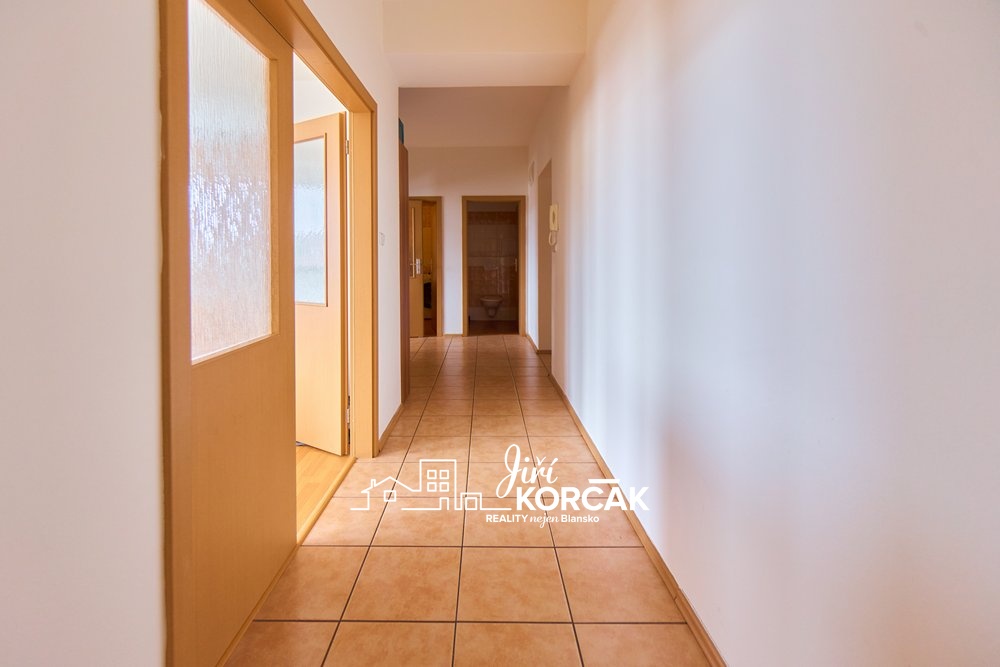 Tenhle byt najdete v ulici Hybešova hned za poštou, v klidné části Blanska, kde je přitom vše na dosah.