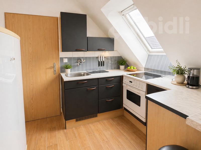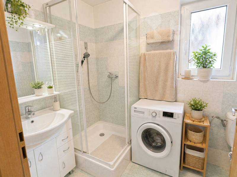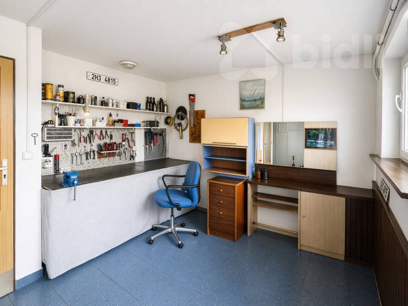 V přízemí domu se nachází obývací pokoj s kuchyňským koutem, ložnice a koupelna s WC. Praktickou součástí přízemí je dílna a místnost s technickým zázemí, kde je umístěna technologie pro tepelné čerpadlo. Dispozice přízemí působí funkčně a nabízí dostatek prostoru jak pro běžné rodinné bydlení, tak pro zázemí spojené s provozem domu.