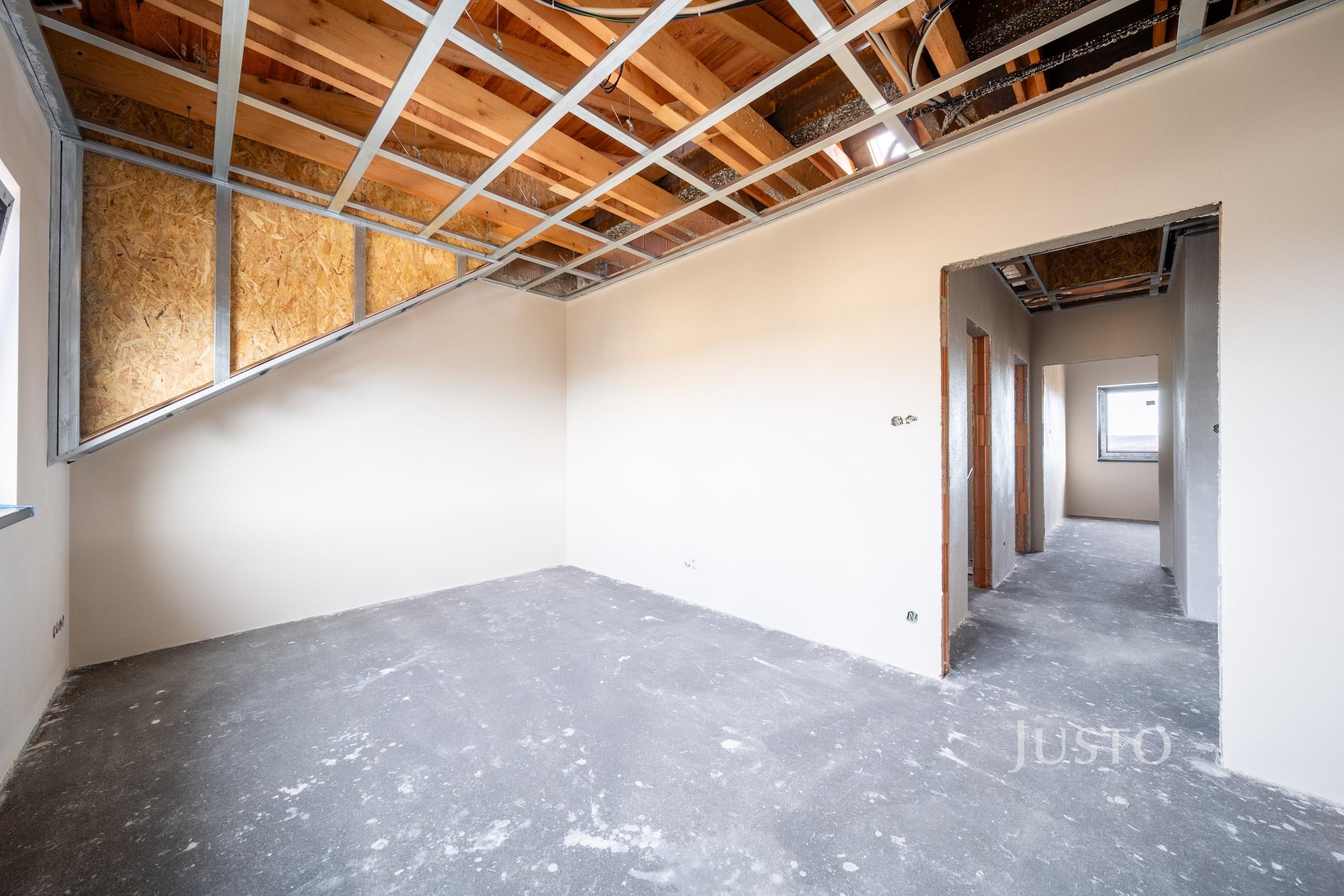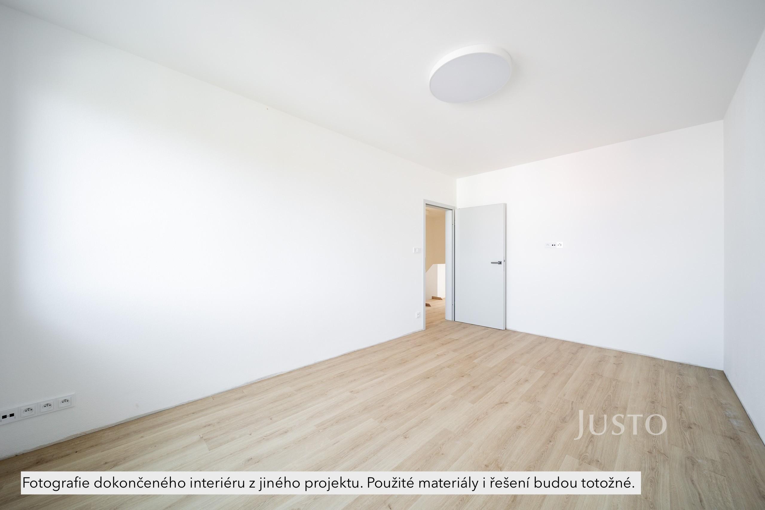 Dispozice domu je promyšlená do posledního detailu. Dominantou přízemí je otevřený obývací prostor s kuchyňským koutem o výměře 34,84 m² – místo, kde se odehrává každodenní rodinný život. Díky přímému vstupu na terasu (13,8 m²) a zahradu se interiér krásně propojuje s venkovním prostorem. Nechybí ani pracovna či pokoj pro hosty (9,69 m²), který se přizpůsobí vašim aktuálním potřebám – ať už jde o práci z domova, nebo ubytování návštěvy. Dále v přízemí najdete zádveří (5,43 m²), chodbu (5,14 m²), technickou místnost (2,10 m²) a koupelnu s walk-in sprchovým koutem a WC (4,69 m²).