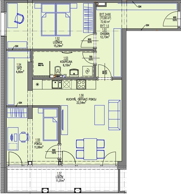 | Dispozice/podlahová plocha: | 3+kk/84 m² |