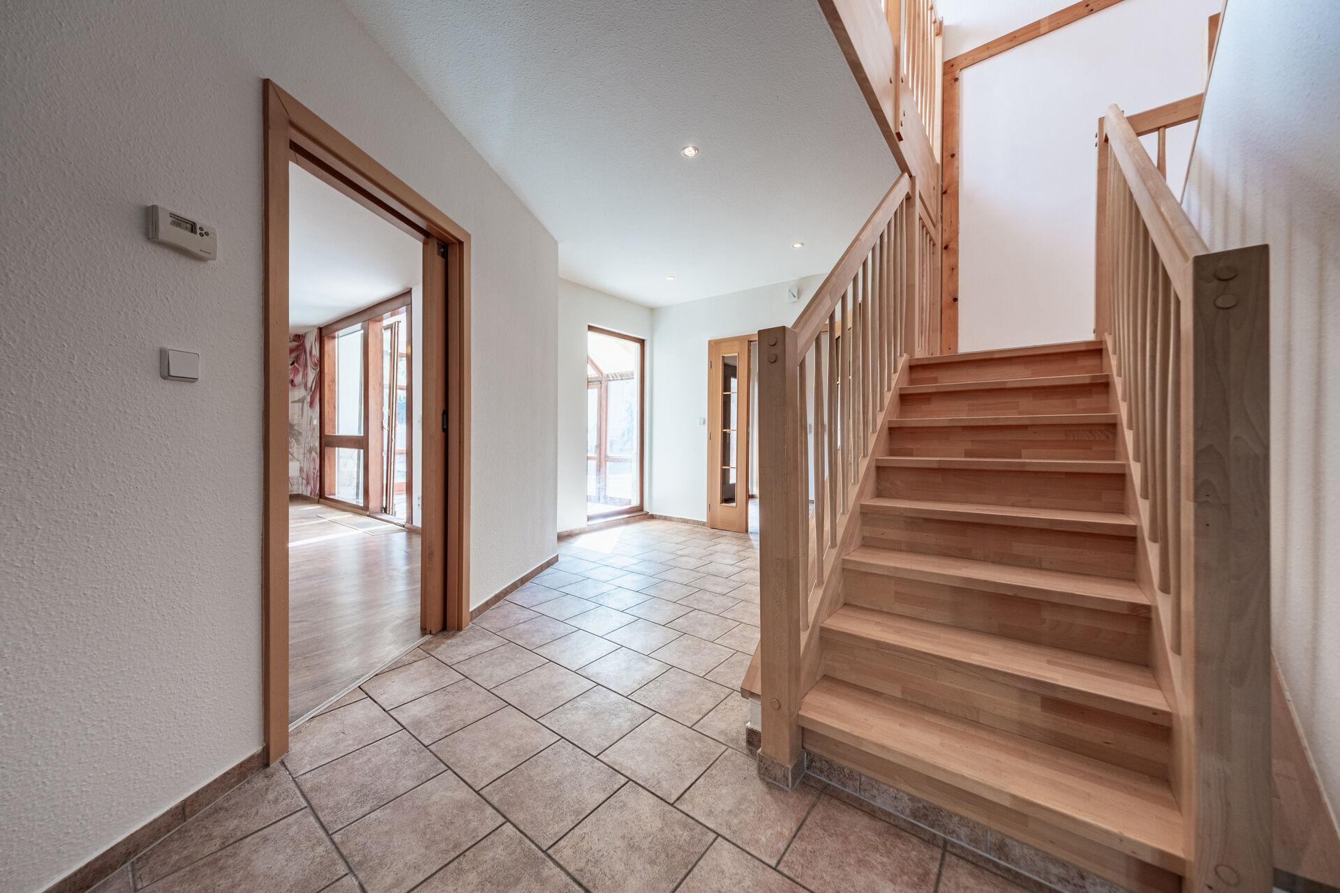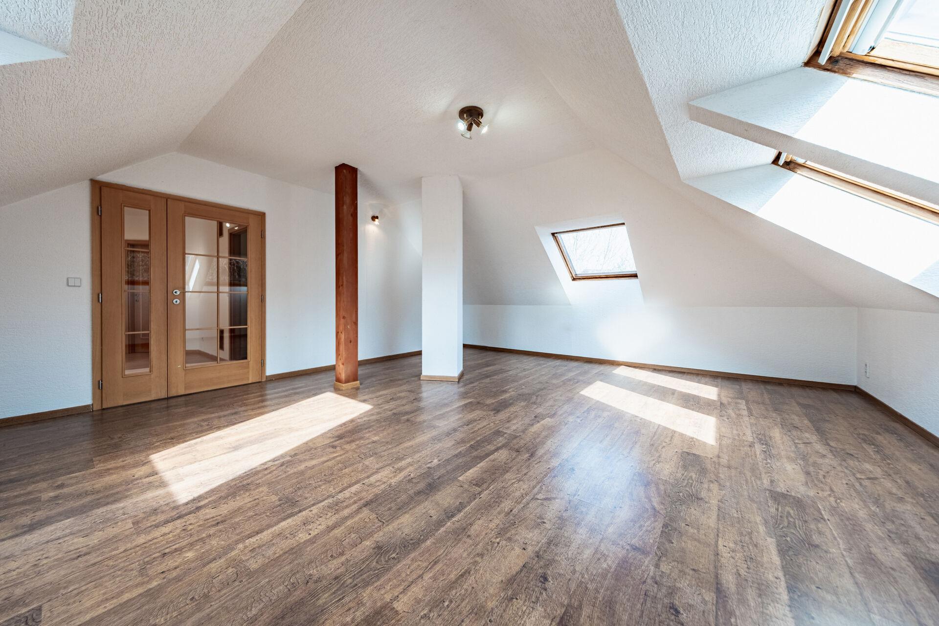 Samostatně stojící rodinný dům o dispozici 5+kk + tři šatny, dvě koupelny, komora, suterén s technickým zázemím a skladem, přístavbou a garáží pro dva automobily, byl kolaudován v roce 2003 jako dřevostavba a nabízí přesně ten typ bydlení, který dává smysl. Dvě nadzemní podlaží s obytným podkrovím a částečné podsklepení vytvářejí funkční celek, kde má každý člen rodiny svůj prostor, a zároveň vše zůstává přirozeně propojené.