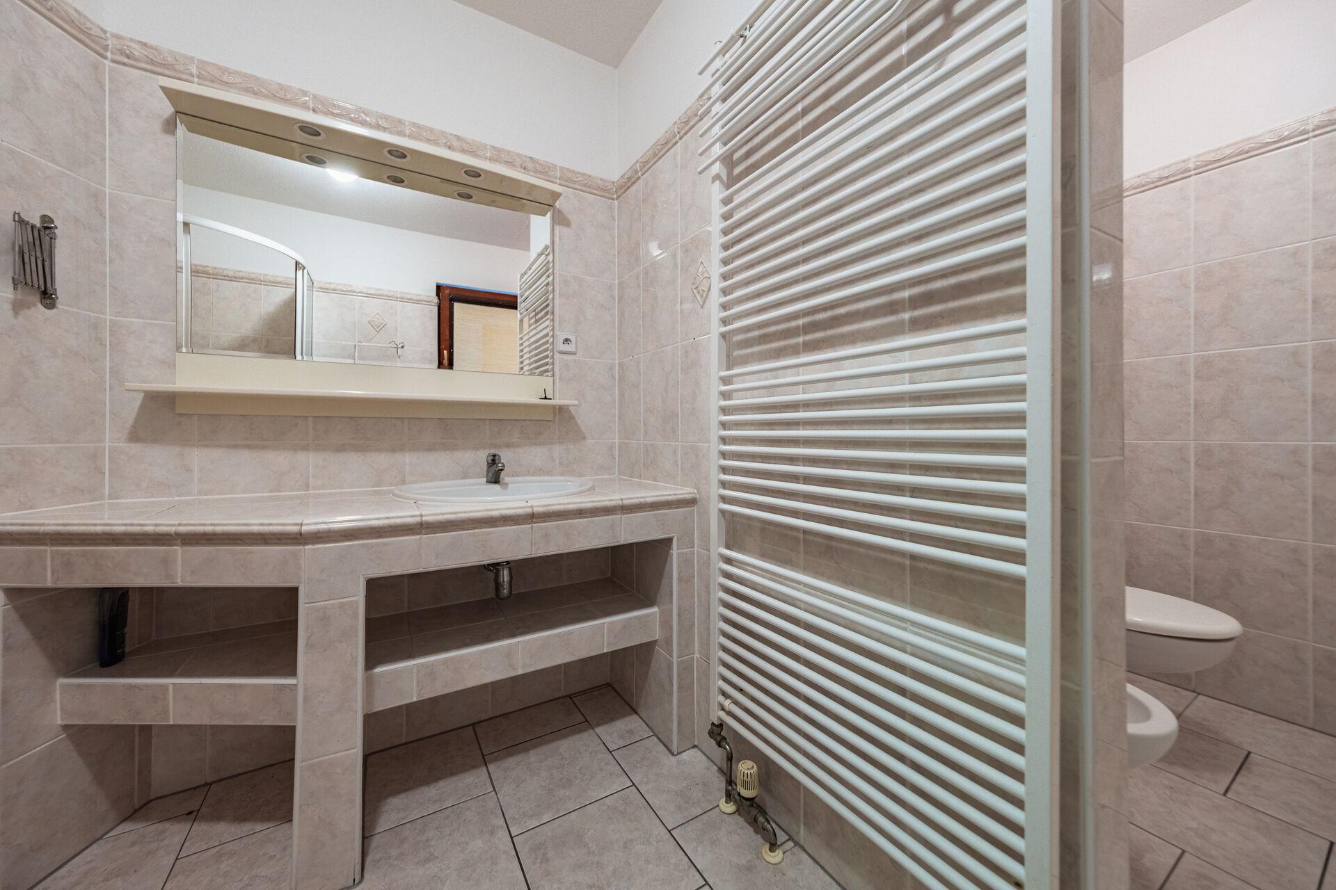 Vytápění je řešeno elektrickým teplovzdušným systémem, ohřev vody pak zajišťuje bojler. Tento systém je bezúdržbový a zároveň ponechává prostor pro případnou modernizaci dle představ nového majitele.