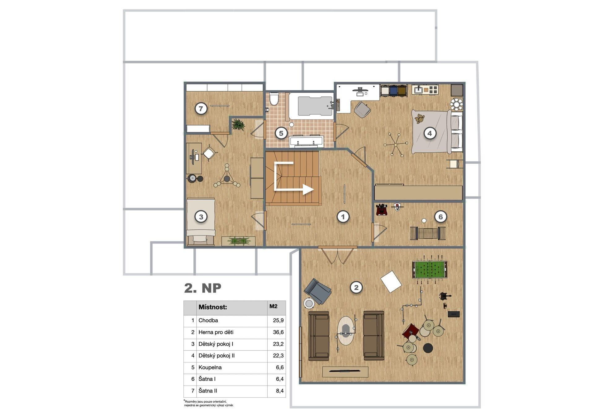 Už při vstupu do domu vnímáte jeho atmosféru – vzdušnost, světlo a pocit domova, který nevzniká náhodou. Dispozice je navržena s důrazem na každodenní život – společné chvíle v obytné části, klid v podkroví a dostatek zázemí pro vše, co rodina potřebuje.