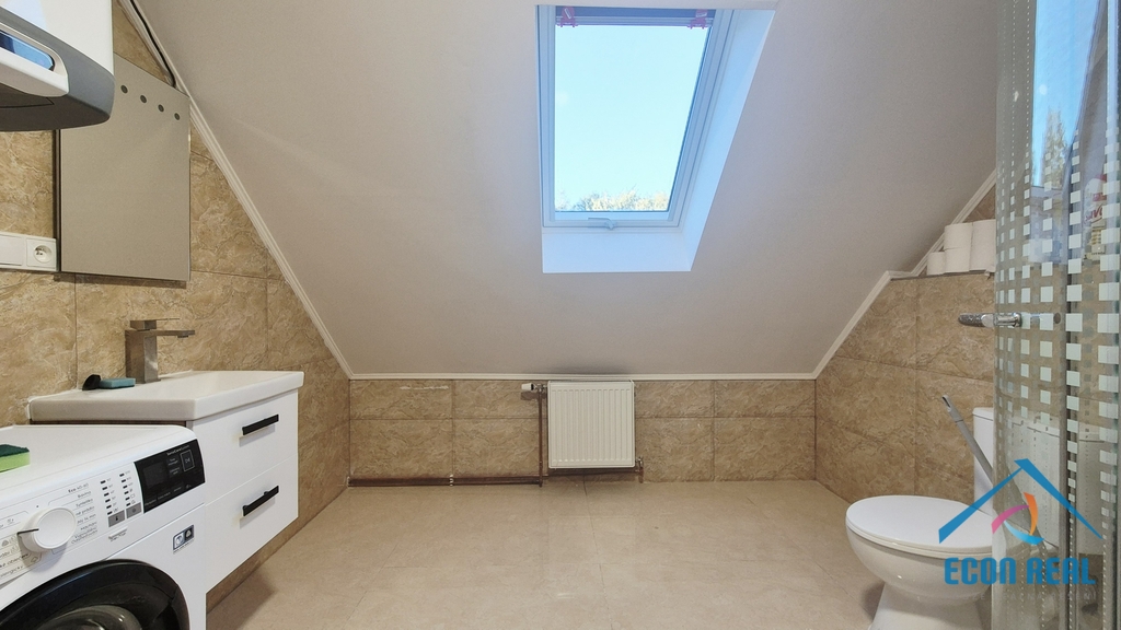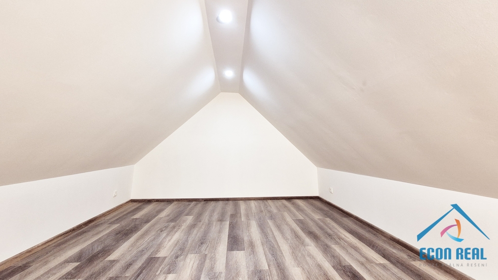 Byt je nově vybudovaný a vybavený kuchyňskou linkou se sklokeramickou varnou deskou, elektrickou troubou, dřezem, digestoří a velkou lednicí s mrazákem. Na podlahách vinylové krytiny. Podlahová plocha bytu je 49,1 m2 s tím, že obývací pokoj má jednu sešikmenou stěnu a ložnice je plně podkrovní.