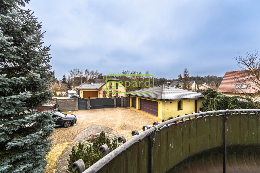 Rozsáhlý pozemek o výměře 1 352 m² je kompletně oplocen masivním zděným plotem se skleněnými prvky, nabízí reprezentativní příjezd, parkovací plochy, samostatnou garáž a udržovanou okrasnou zahradu s absolutním soukromím.