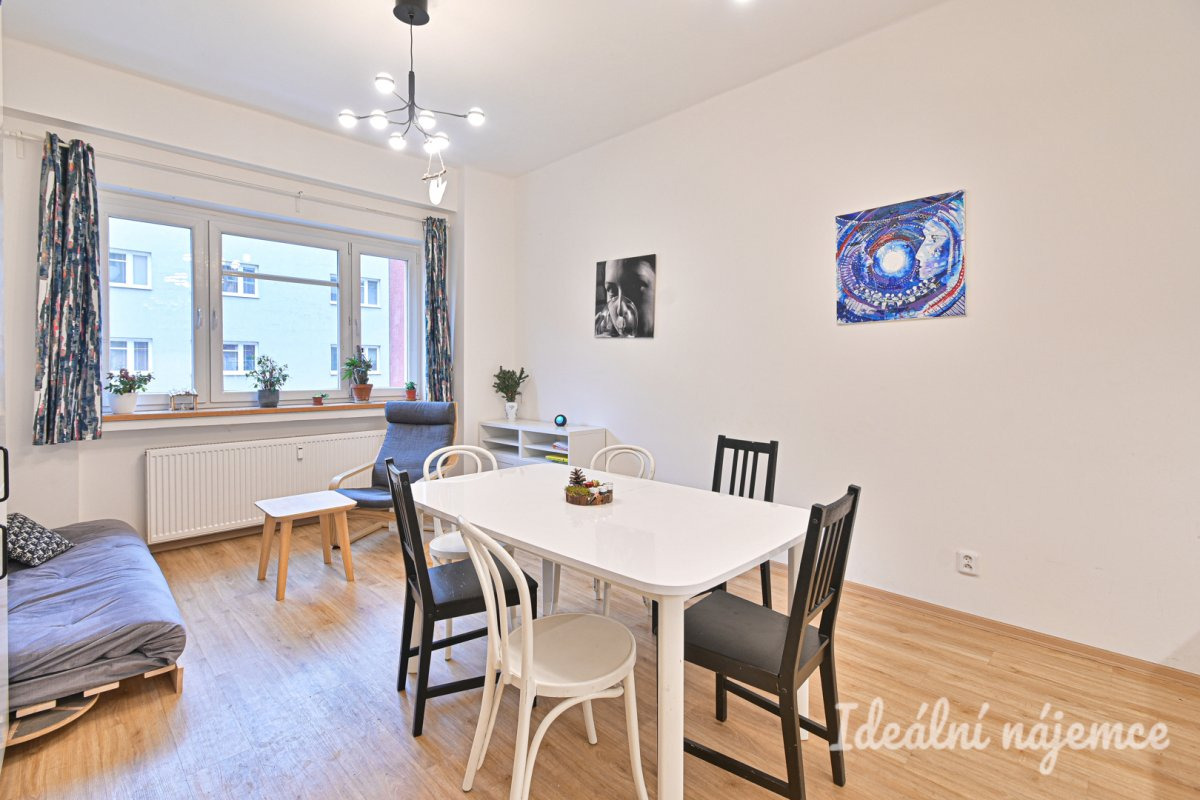 Byt se nabízí částečně vybavený dle fotografií (součástí nebudou postele). Dominantou je světlý obývací prostor s kuchyňským koutem, který disponuje varnou deskou, myčkou, troubou, lednicí, jídelním stolem a židlemi. Jednotlivé pokoje jsou neprůchozí a díky svému uspořádání poskytují dostatek soukromí pro rodinu i spolubydlení. Koupelna je vybavena sprchovým koutem a umyvadlem. Toaleta je odděleně.