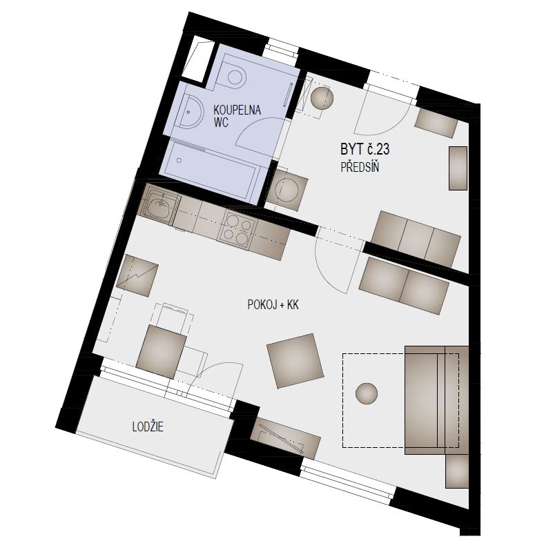 | Dispozice/podlahová plocha: | 1+kk/42 m² |