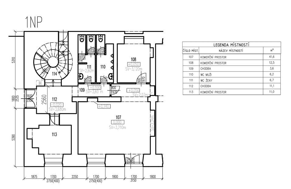 Prostor je vhodný k jakékoliv obchodní činnosti, například na prodejnu, showroom, kavárnu či služby typu manikúra apod. Součástí prostoru je toaleta, prodejní prostor a prostor pro sklad/zázemí. Výhodou jsou velké výkladce, které jsou viditelné z uliční fronty. Skládá se z jednoho otevřeného prostoru, který je možné rozdělit na prodejní/obchodní prostor a zadní skladovací část. Dále prostor nabízí oddělenou kancelář a druhý vchod. V prostoru je k dispozici menší prostor pro zázemí a tři toalety. Dále je zde možnost pronájmu vyhrazeného místa přímo před prodejnou vhodného například pro zahrádku.