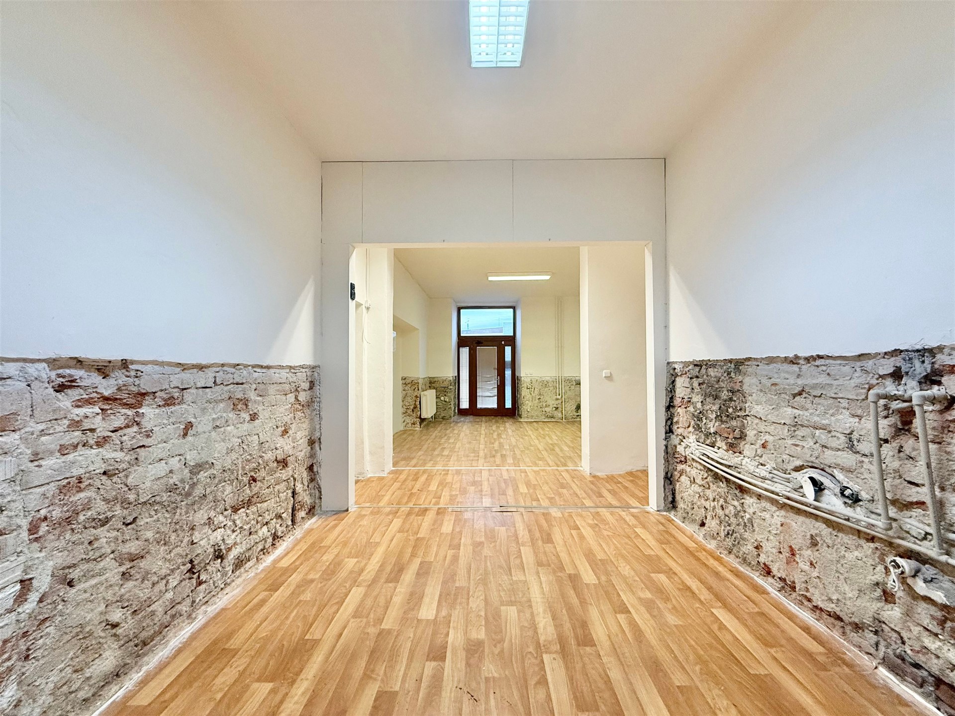 Prostor je vhodný k jakékoliv obchodní činnosti, například na prodejnu, showroom, kavárnu či služby typu manikúra apod. Součástí prostoru je toaleta, prodejní prostor a prostor pro sklad/zázemí. Výhodou jsou velké výkladce, které jsou viditelné z uliční fronty. Skládá se z jednoho otevřeného prostoru, který je možné rozdělit na prodejní/obchodní prostor a zadní skladovací část. Dále prostor nabízí oddělenou kancelář a druhý vchod. V prostoru je k dispozici menší prostor pro zázemí a tři toalety. Dále je zde možnost pronájmu vyhrazeného místa přímo před prodejnou vhodného například pro zahrádku.