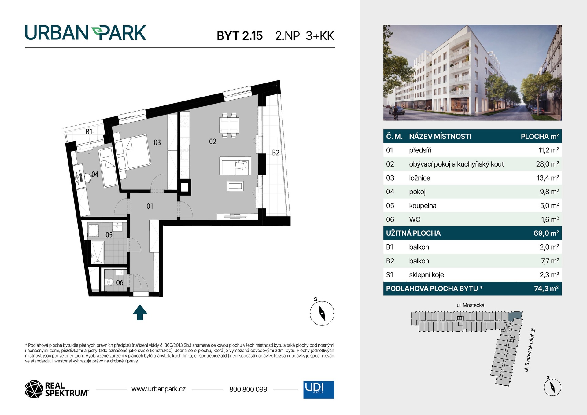 | Dispozice/podlahová plocha: | 3+kk/74 m² |