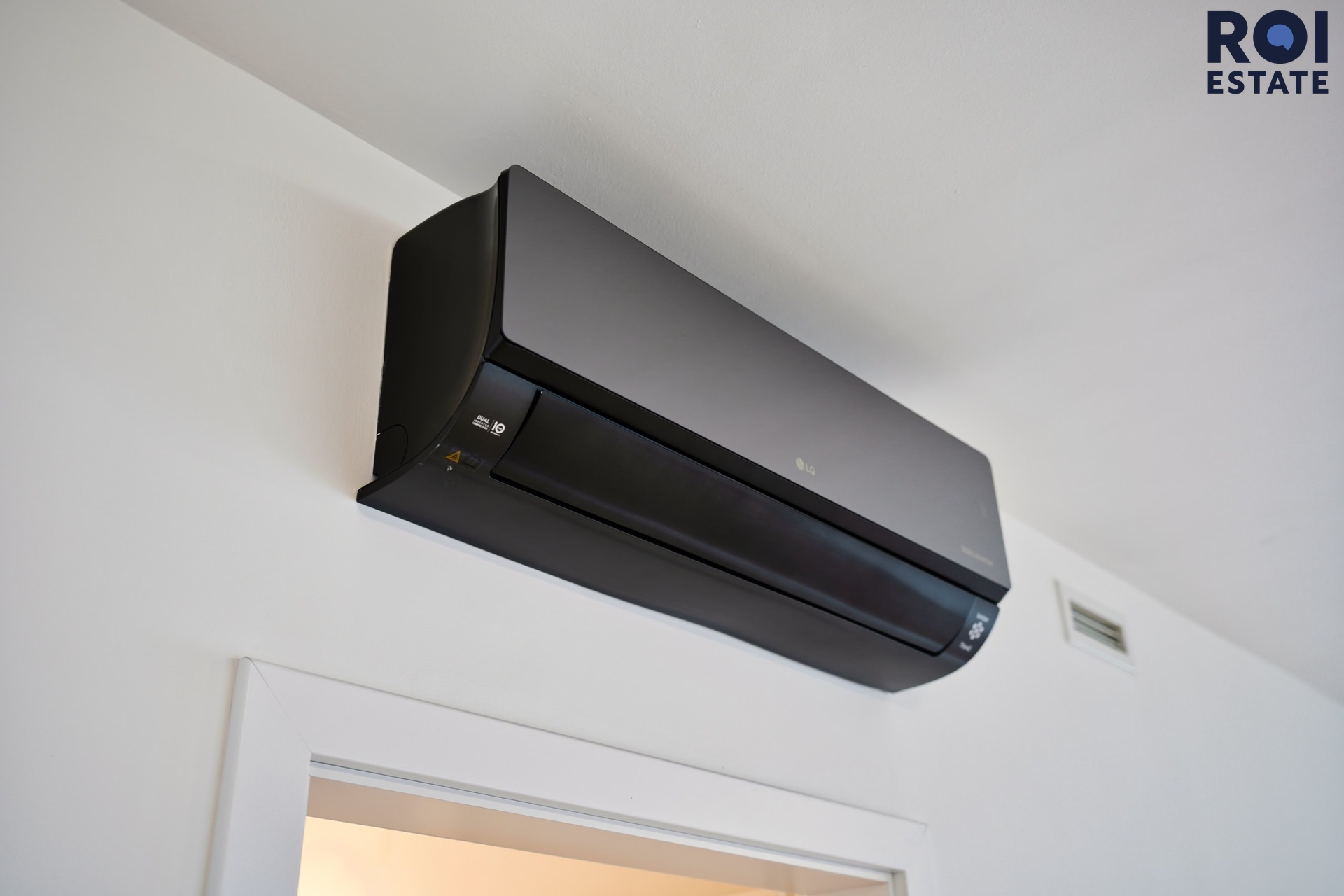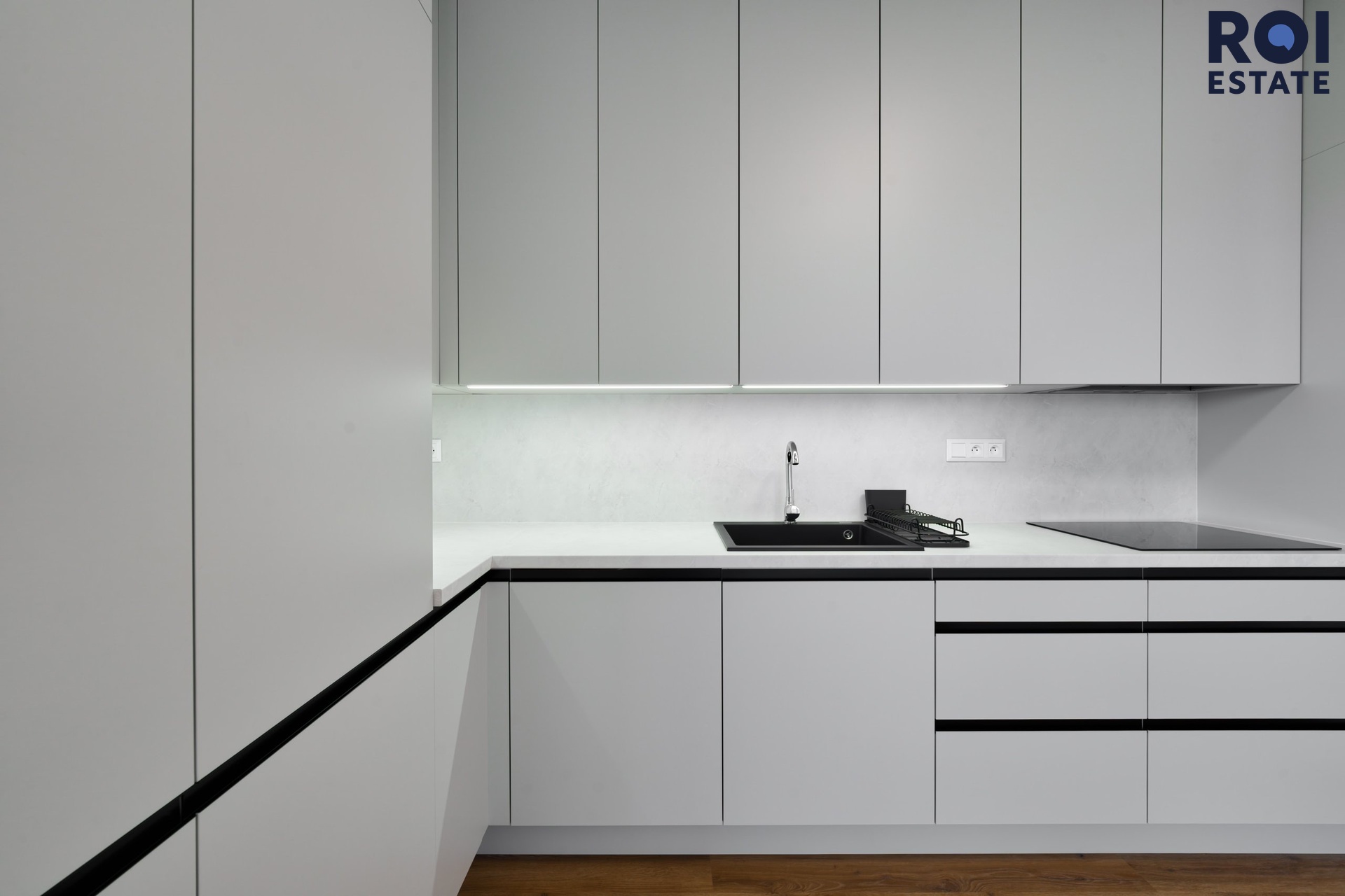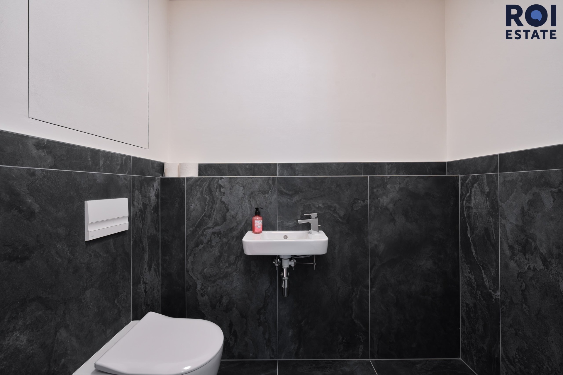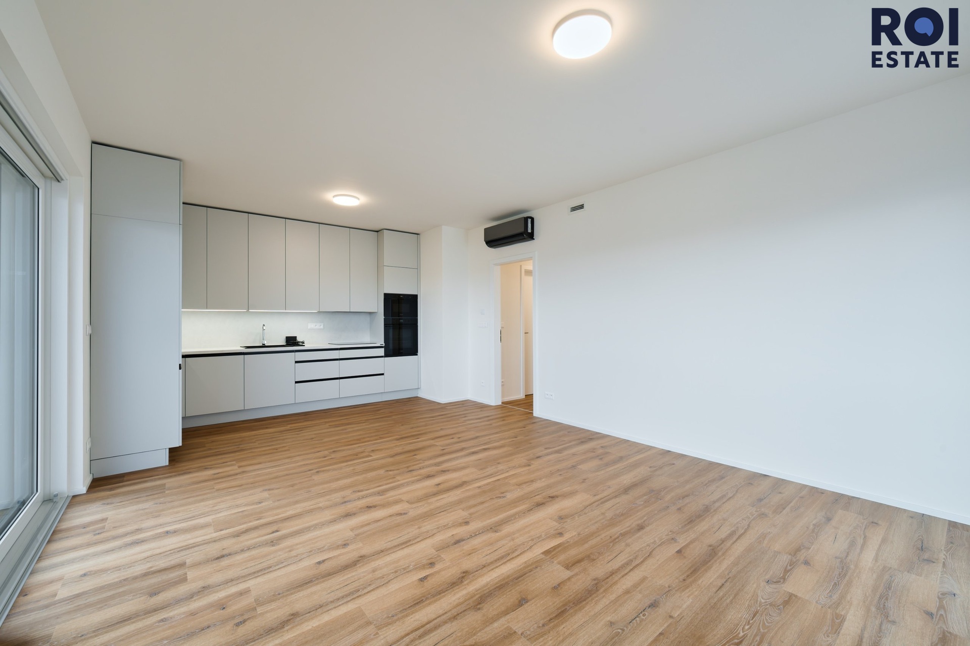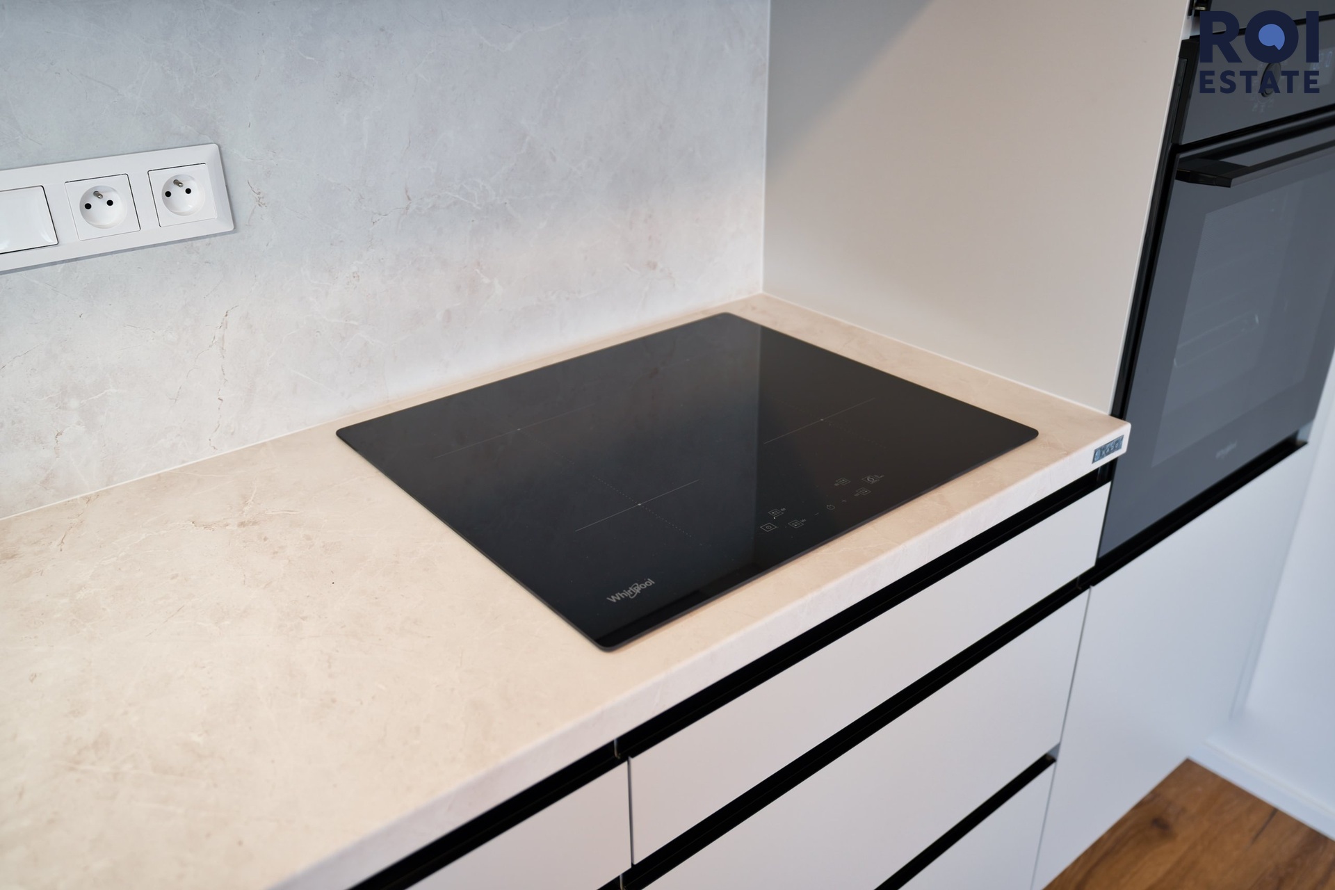 Koupelna a toaleta jsou oddělené a kuchyňská linka je vybavena všemi spotřebiči, takže stačí přinést věci a bydlet. Klimatizace i rekuperace zajišťují pohodlí po celý rok.