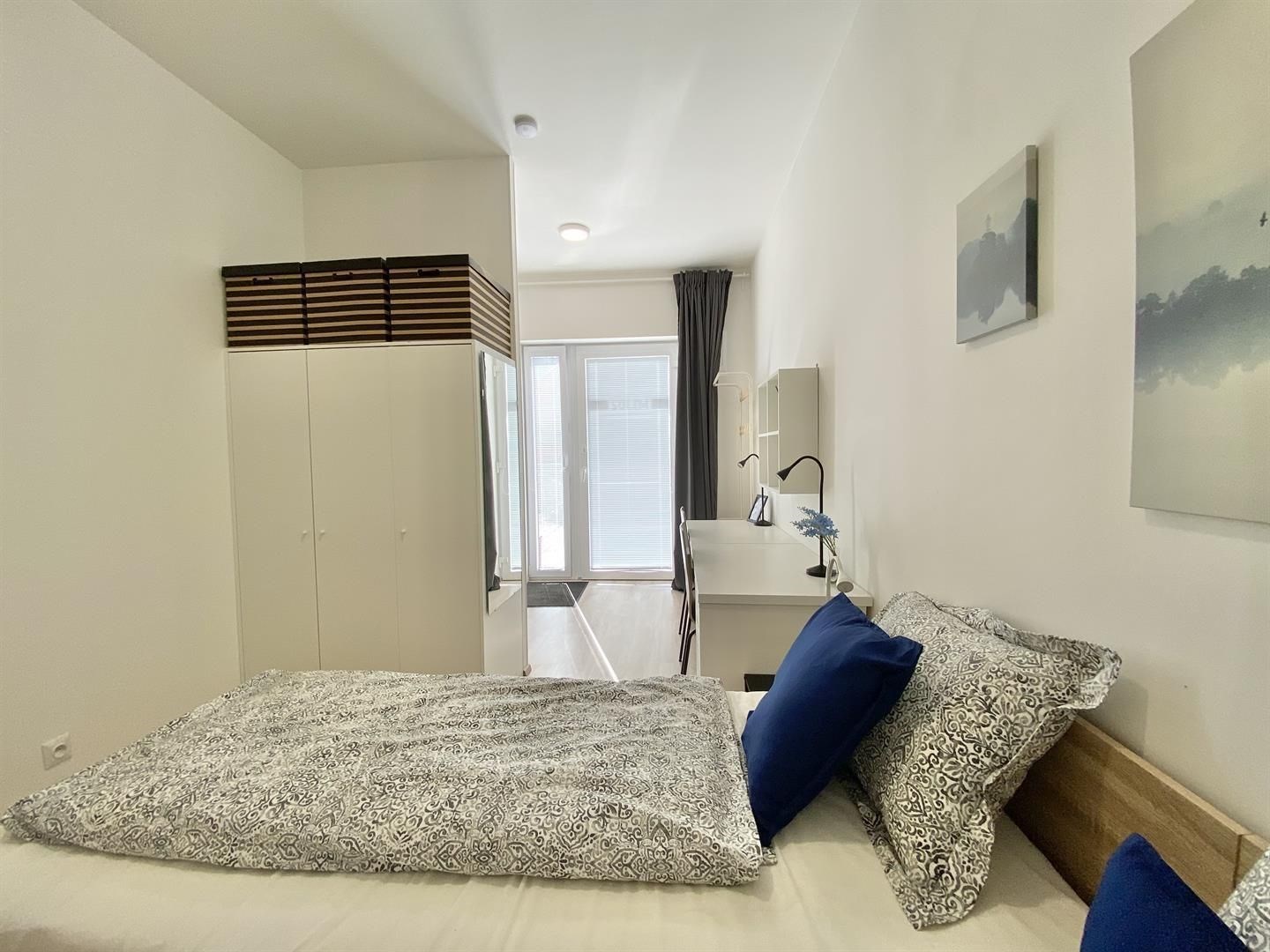 Jedná se o podnájem kompletně vybavené jednotky o dispozici 1+kk. K dispozici je moderní kuchyňský kout včetně lednice, mikrovlnné trouby, varné konvice, sklokeramické desky, digestoře a dřezu. Jednotka je vybavena dvěma pracovními stoly se židlemi, pohodlnou manželskou postelí a prostornou skříní. Koupelna nabízí sprchový kout, záchod a umyvadlo se zrcadlem. K dispozici je příprava pro připojení vlastní pračky nebo můžete využít společných prádelen, kde se nachází vždy pračky a sušičky.