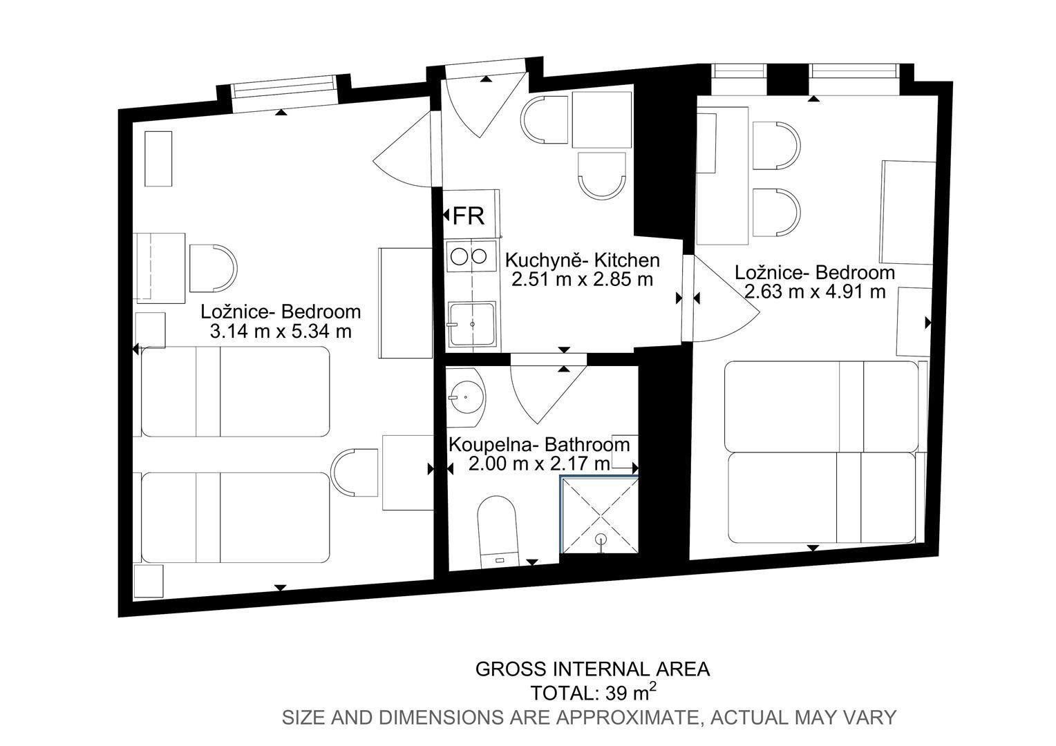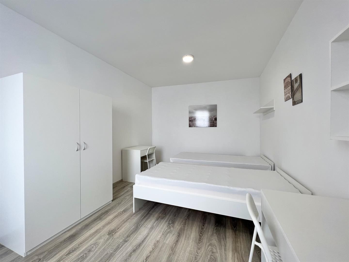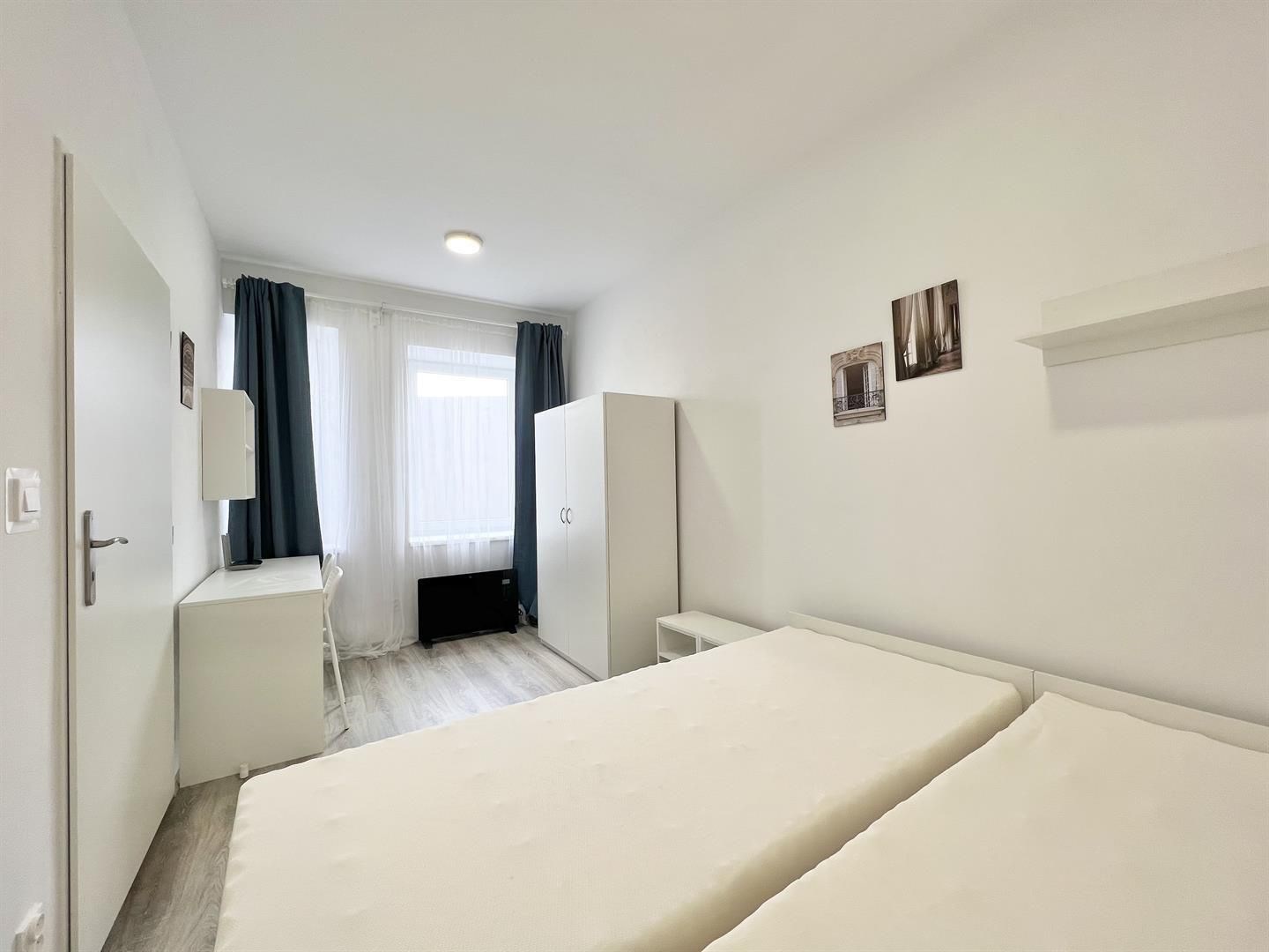 Jedná se o podnájem kompletně vybavené jednotky o velikosti 2+1. K dispozici je moderní kuchyně včetně lednice, sklokeramické desky, mikrovlnné trouby, varné konvice, digestoře a dřezu. Zároveň se v kuchyni nachází jídelní stůl se židlemi. Jednotka dále nabízí dva vzájemně neprůchozí pokoje. V každém pokoji naleznete dvě postele s pohodlnou matrací. U postele dále naleznete noční stolek s lampičkou. Každý pokoj má dva pracovní stoly s úložným prostorem, dvě pohodlné židle a prostornou skříň. Tato jednotka je tedy kompletně zařízen až pro 4 osoby. Koupelna nabízí sprchový kout, záchod a umyvadlo se zrcadlem.