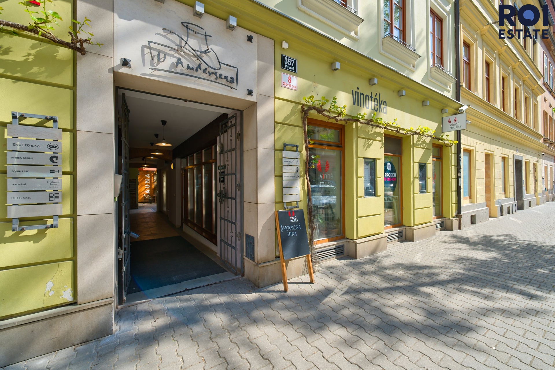 Prostor byl od roku 2018 využíván jako vinotéka se stálou klientelou , aktuálně se pronajímá bez vybavení (vybavení viditelné na fotografiích není součástí nájmu). Ideální pro nový koncept – obchod, showroom, galerii, služby nebo stylovou kavárnu, bistro.