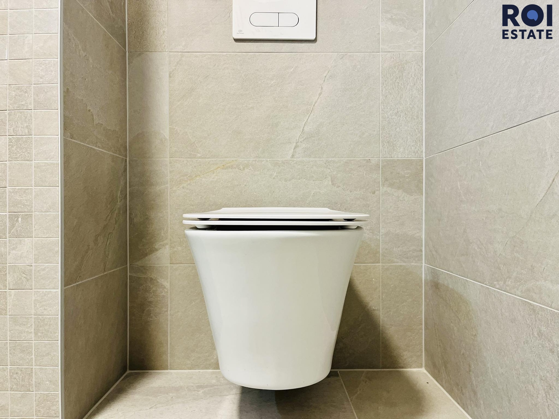 Již samotná budova Vás nadchne designem a zpracováním. Jsou zde použity kvalitní materiály včetně okrasného dřeva nebo velkoformátová dlažba s tvrzeným sklem. Při vstupu do nemovitosti se ocitneme v předsíni, která nás dostane do celého bytu. Po levé straně je krásná koupelna se sprchovým koutem a toaletou, můžete zde umístit své spotřebiče jako je například pračka či sušička nebo obojí. V rámci velké podlahové plochy je samostatný pokoj s kuchyňským koutem vhodný jak pro sedačku, postel nebo dva pracovní stoly. Vše si můžete zařídit dle Vašich potřeb a představ. Fantazii se meze nekladou! Kuchyňská linka byla vyrobena na míru a jsou zde spotřebiče jako například lednice s mrazákem, troubou či myčkou. Indukční deska je samozřejmostí. Pokud máte starost o tom, že byste v bytě cítili teplo, tak se bát nemusíte. Okna jsou vybavena předokenními žaluziemi typu Z, které zajistí tepelný komfort v domácnosti. Největší výhodou jsou také chlazené stropy, kde si sami nastavíte teplotu, kterou v nemovitosti chcete mít. Už Vás tak teda nebude trápit nepohodlí, nemoci či bolavé klouby z klimatizace.