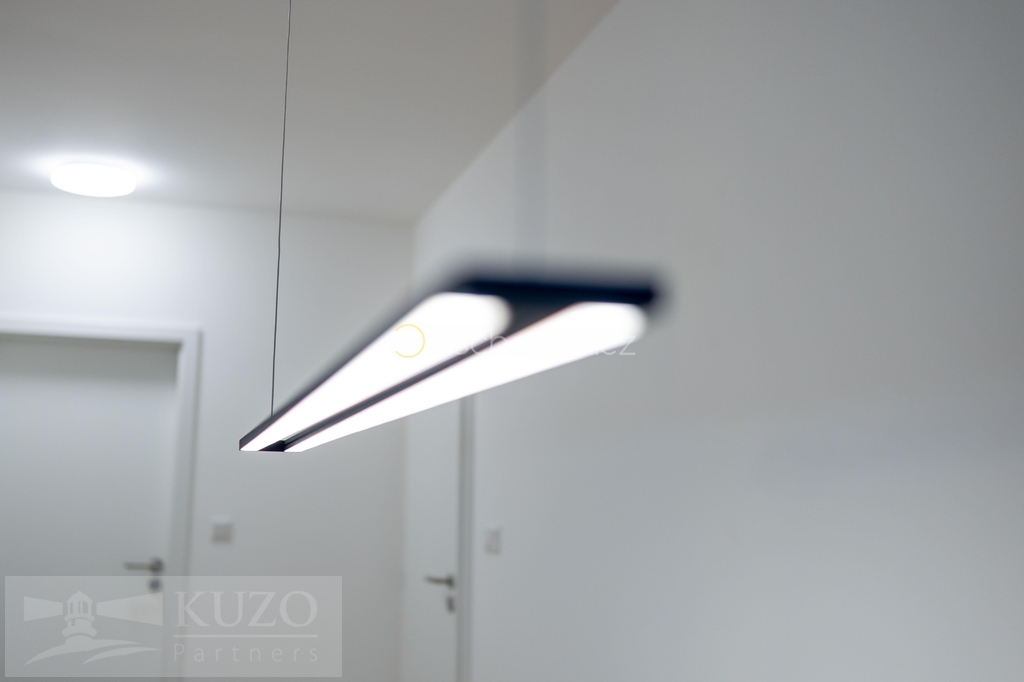 Celý prostor je laděn v čistém, moderním designu, který podtrhuje svěžest novostavby.