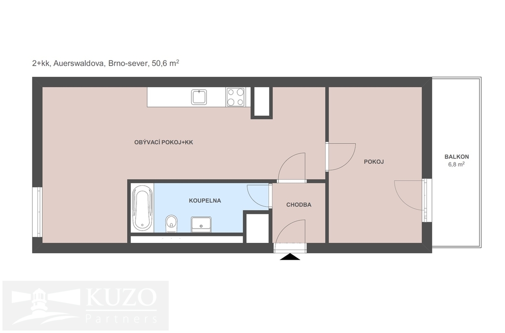 UP - 50,60 m², CP - 57,40 m², balkon - 6,8 m².