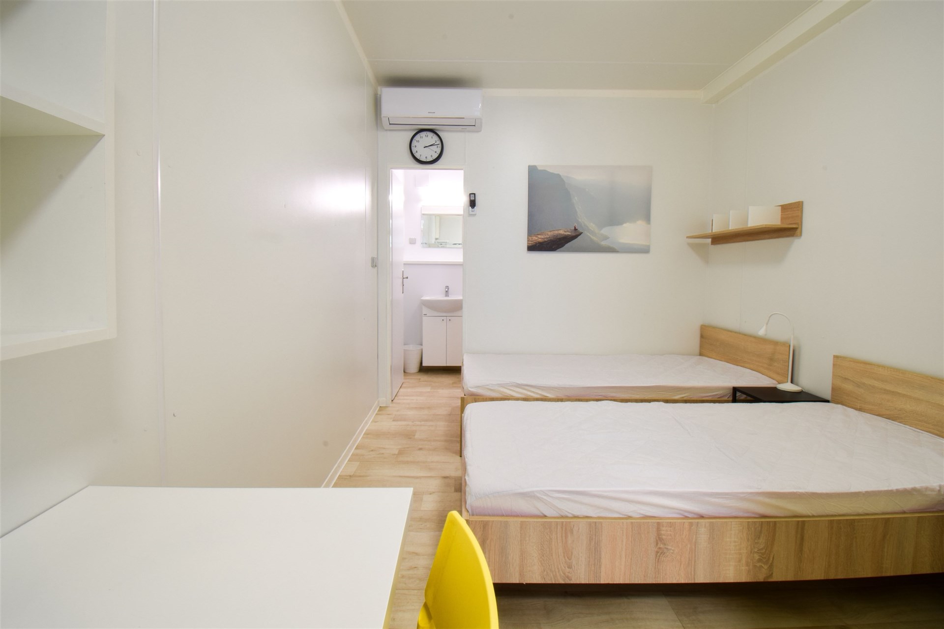 Jedná se o podnájem moderní jednotky o dispozici 1+kk, která je kompletně vybavená. Součástí vybavení kuchyně je plně zařízený kuchyňský kout, včetně lednice, mikrovlnné trouby, varné konvice, sklokeramické desky, digestoře a dřezu. Jednotka je vybavena dvěma pohodlnými postelemi s nočními stolky, dvěma pracovními stoly se židlemi a dostatečným prostorem na ukládání oblečení. Koupelna je také plně vybavená, a to sprchovým koutem, záchodem a umyvadlem. K dispozici je příprava pro připojení vlastní pračky.