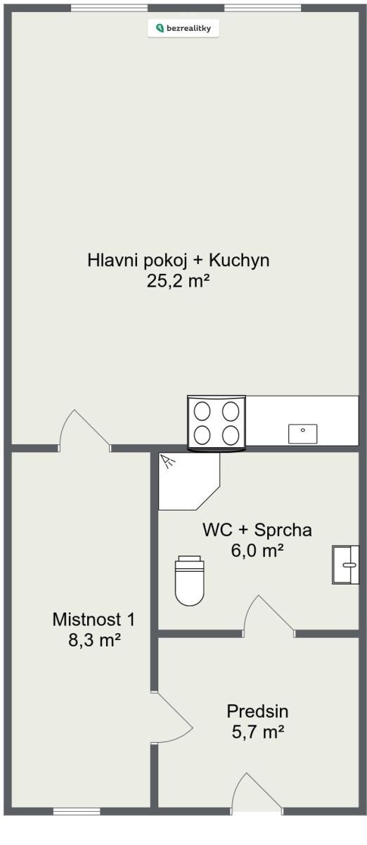 | Dispozice/podlahová plocha: | 1+1/52 m² |