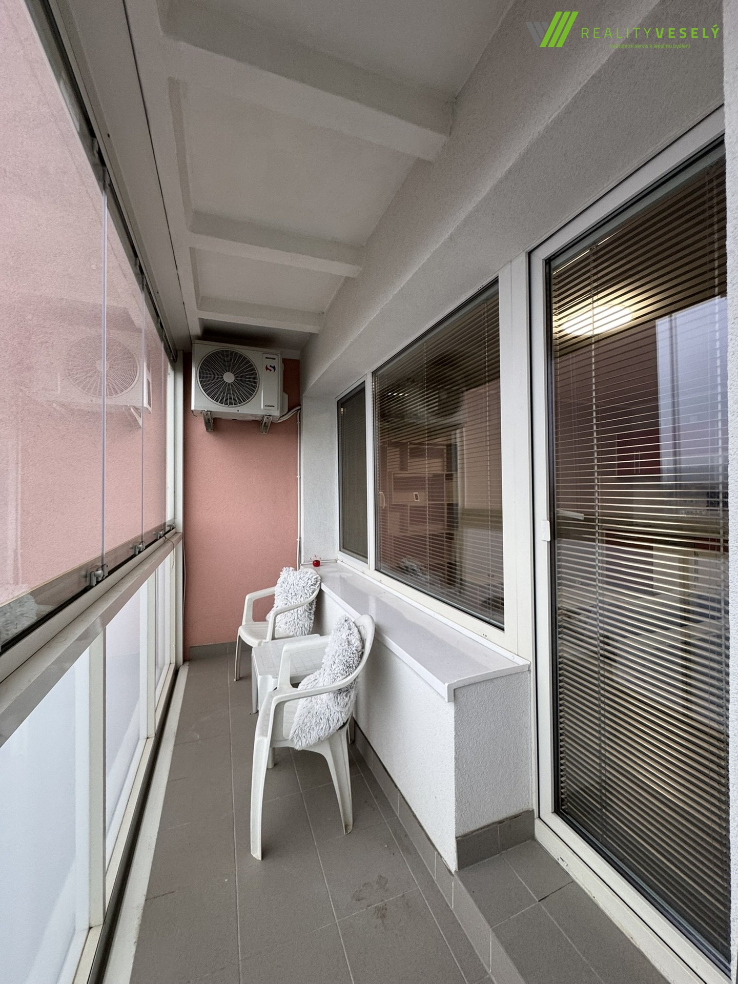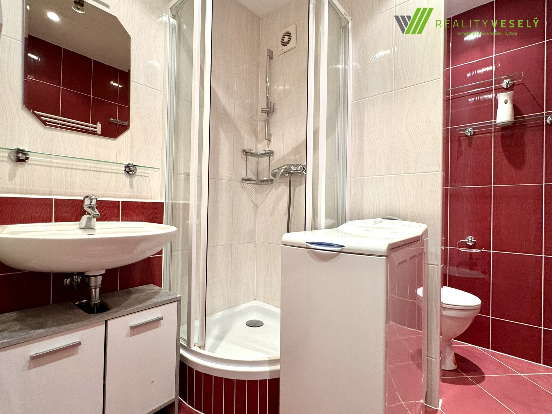 Samotný byt disponuje užitnou plochou přes 38 m², ke které náleží nadstandardně prostorná, zasklená lodžie o výměře 5 m². Interiér prošel rekonstrukcí, která kladla důraz na maximální využití prostoru a moderní standardy bydlení. Hned po vstupu vás uvítá praktická předsíň, ze které je přístup do zděné koupelny vybavené sprchovým koutem, umyvadlem, toaletou a pračkou. Velkým benefitem je samostatná komora přístupná přímo z chodby, která v bytě zajišťuje dostatek úložných prostor pro sezónní věci či domácí potřeby.