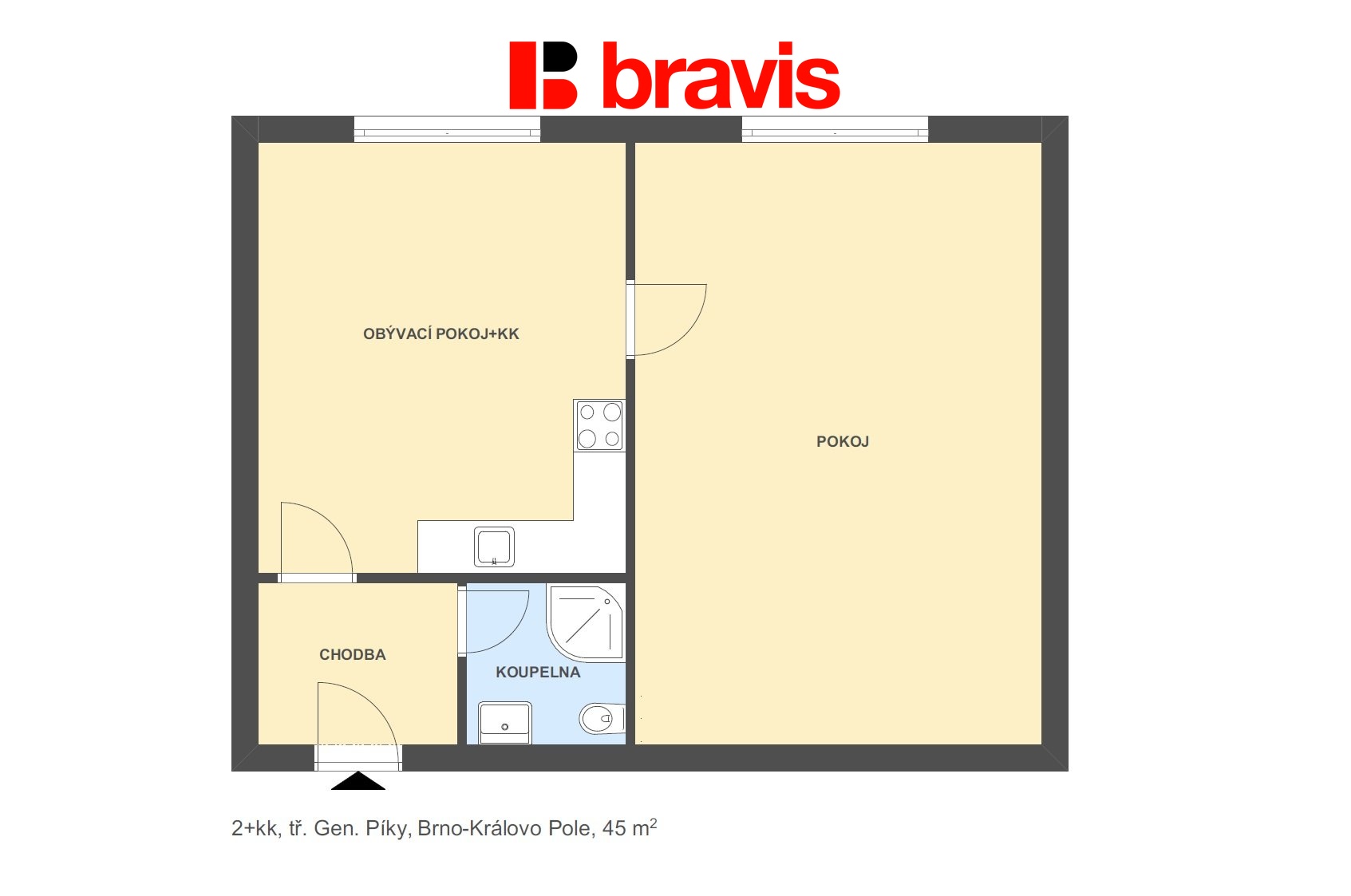 | Dispozice/podlahová plocha: | 2+kk/47 m² |