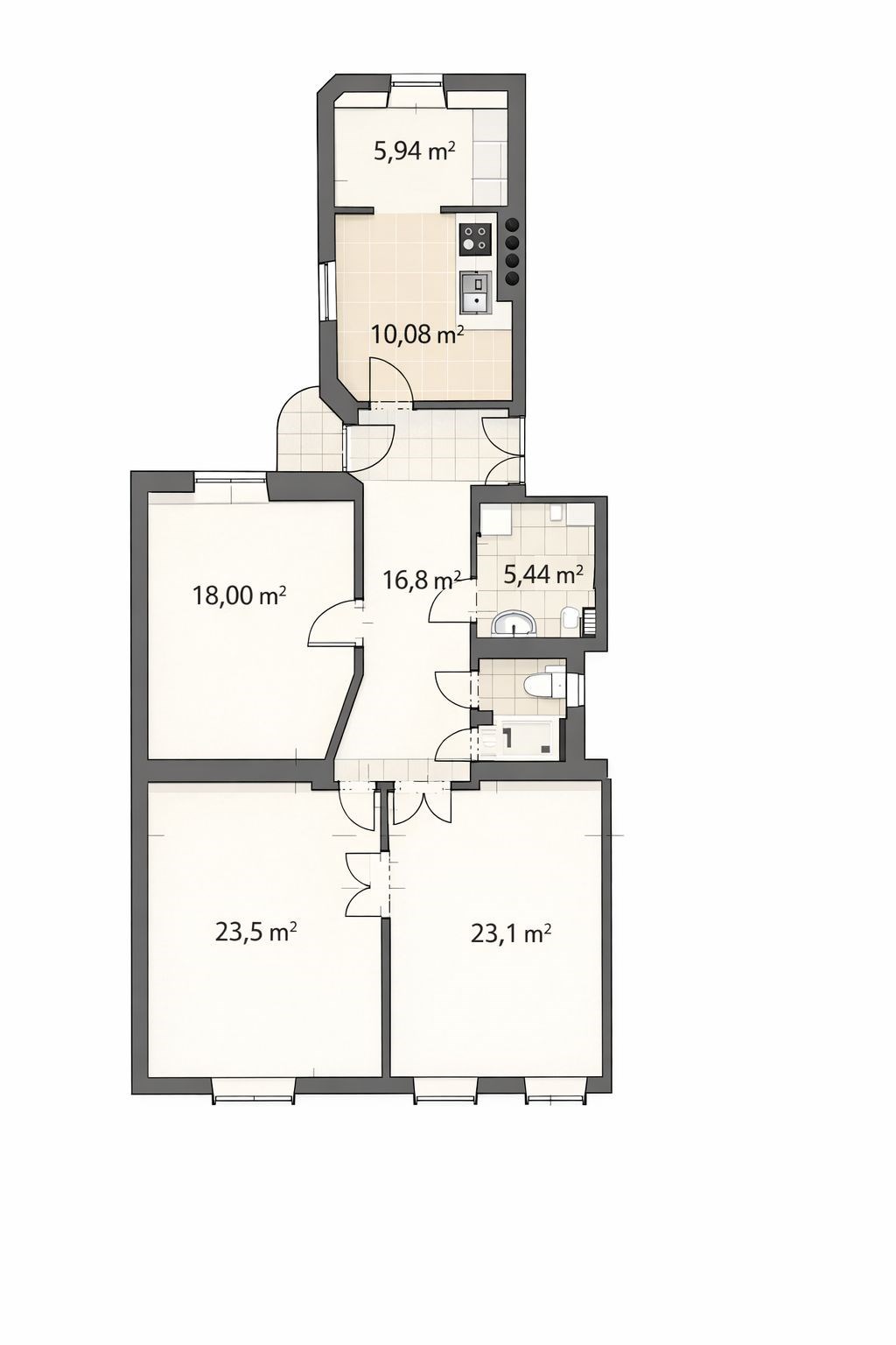 | Dispozice/podlahová plocha: | 3+1/114 m² |