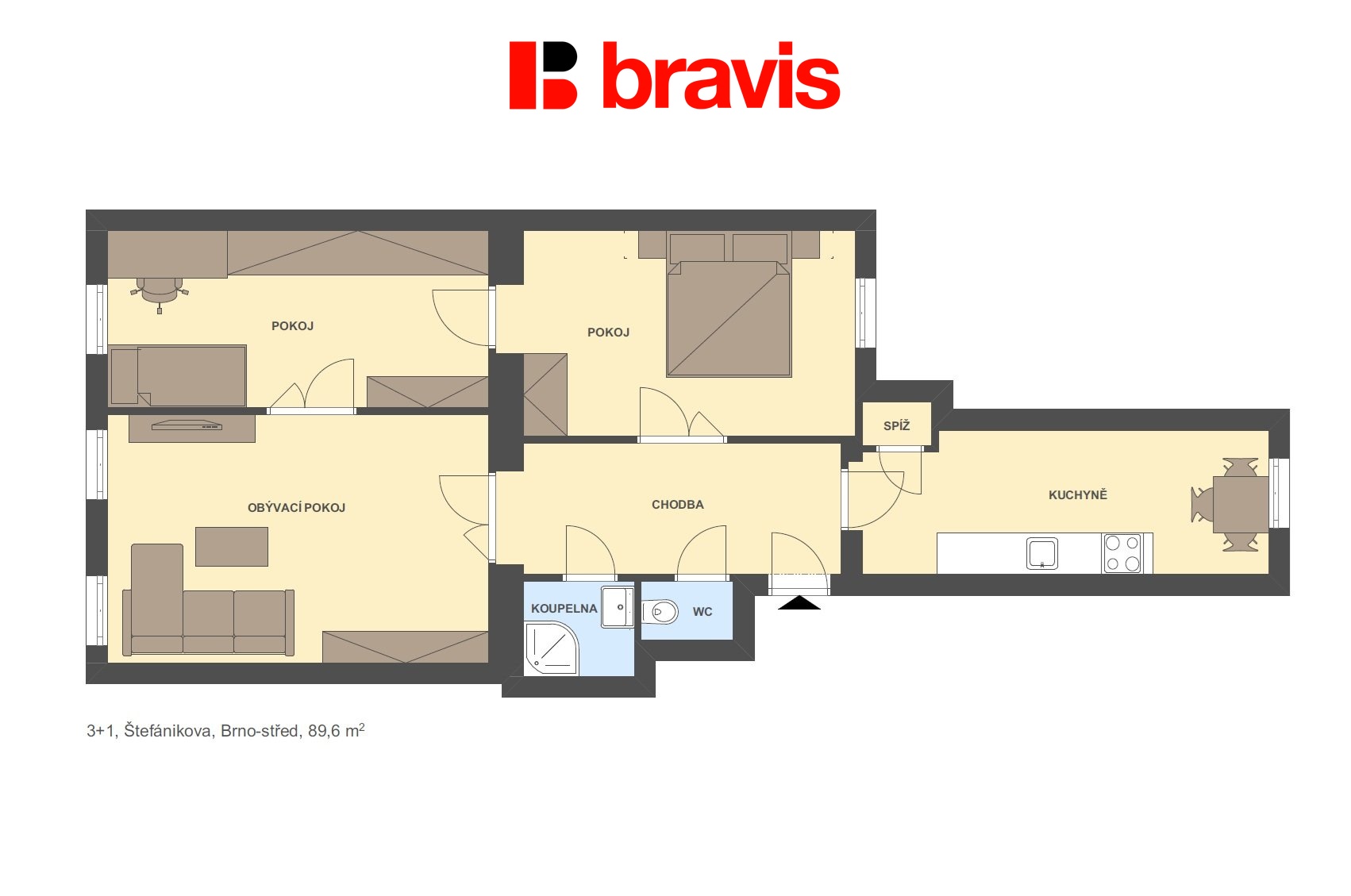 | Dispozice/podlahová plocha: | 3+1/90 m² |