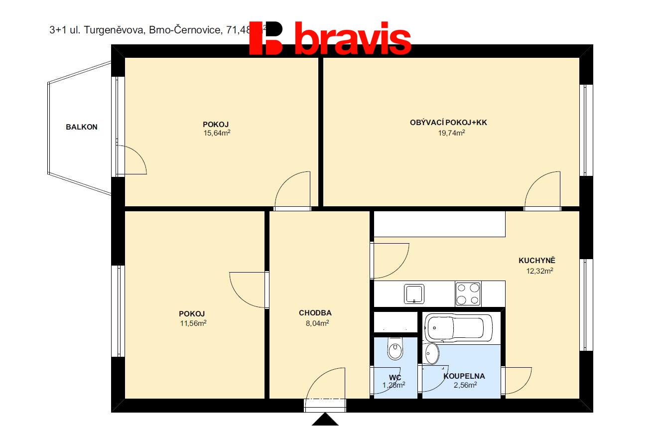 | Dispozice/podlahová plocha: | 3+1/71 m² |
