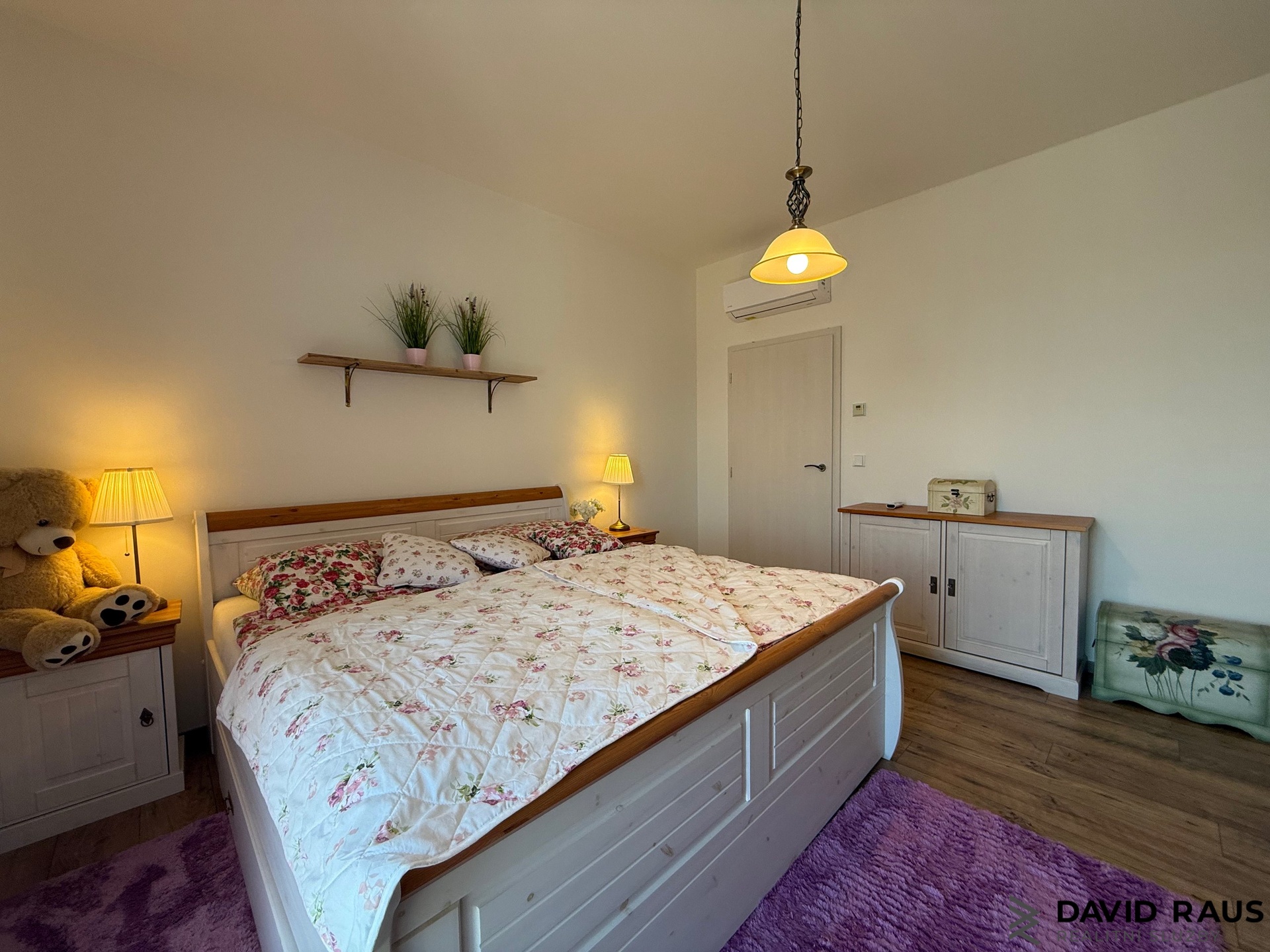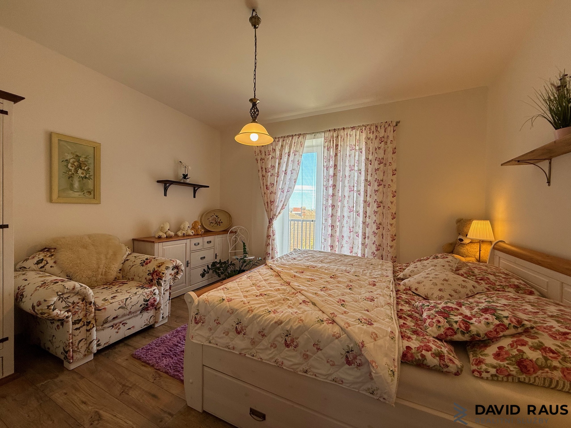 Dispozice 3+kk: Po vstupu do bytu vás přivítá předsíň s vestavěnou skříní, ve které je elegantně ukrytý bojler, takže nenarušuje čistý vzhled interiéru. Z předsíně vstoupíte do hlavní obytné části – obývacího pokoje s kuchyňským koutem a jídelní zónou. Tento prostor působí velmi útulně a harmonicky, díky světlé výmalbě, přírodním materiálům a celkovému sladění interiéru. Je to místo, kde se budete cítit příjemně od prvního okamžiku. I zde je k dispozici klimatizace pro maximální komfort v letních měsících. Byt nabízí ložnici s klidnou atmosférou, ze které je přímý vstup na balkon – ideální místo pro ranní kávu i večerní odpočinek. Také zde je instalována klimatizace. Další samostatný pokoj může sloužit jako dětský pokoj, pracovna nebo pokoj pro hosty a stejně jako ostatní místnosti je vybaven klimatizací. Součástí bytu je také koupelna, která je laděna do jemných přírodních tónů v kombinaci světlé keramiky a dekoru dřeva. Dominantou prostoru je vana pro pohodlnou relaxaci a celkový dojem podtrhují stylové baterie ve vintage duchu, které odkazují na francouzský design. Díky střešnímu oknu je koupelna krásně prosvětlená a působí vzdušně a příjemně. K dispozici je také samostatné WC.