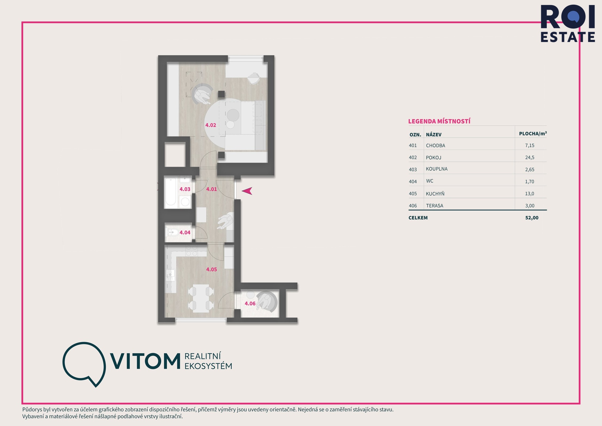 | Dispozice/podlahová plocha: | 1+1/52 m² |