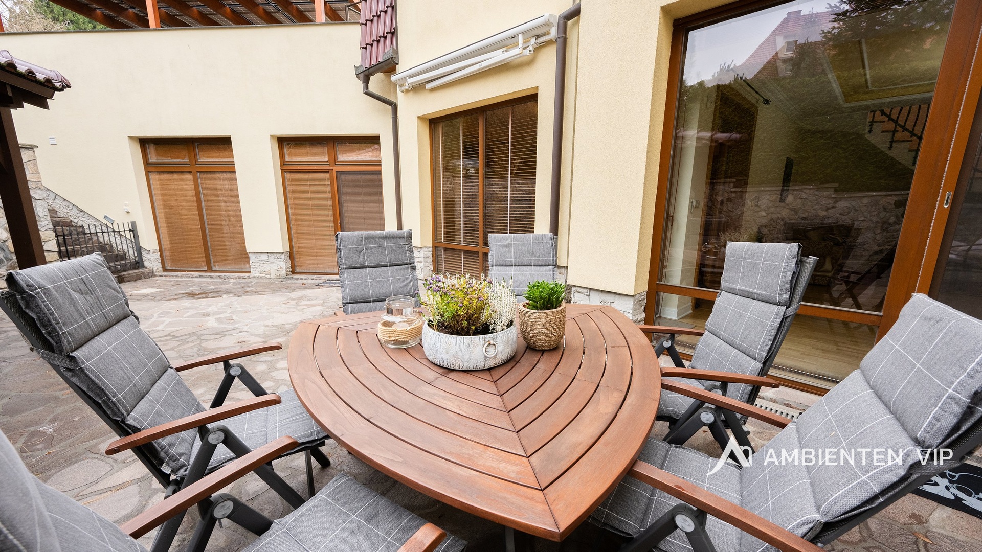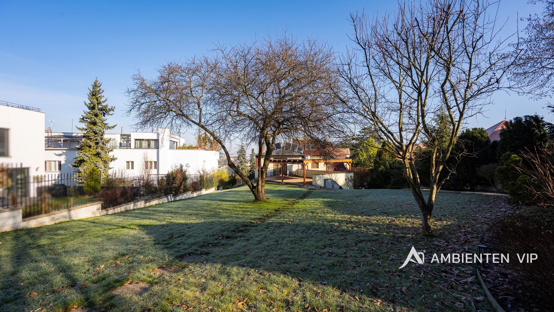 Pokud hledáte samostatně stojící vilu v nejlukrativnější městské části ihned k nastěhování, tak tako vila je určena právě vám. Nachází se v bezprostřední blízkosti Kraví Hory v lokalitě, kde je perfektní dopravní obslužnost, nádherné parky, Wilsonův les, brněnské Planetárium, koupaliště, restaurace, kavárny, základní škola, mateřská škola, sportoviště. Vila je vybavena moderními technologiemi, je v perfektním technickém stavu bez nutnosti investic. Nadchne vás nejen svým umístěním, ale i perfektním provedením stavby, nad jehož realizací osobně dohlížel sám majitel, ale i precizností jakou byla provedena. Jsou zde použity nadstandardní materiály a v posledních letech byly zainvestovány velké finanční prostředky do FV elektrárny, chytré domácnosti, kamerového systému, v garáži je možné nabíjet dvě auta. Užitná plocha vč. teras a pakování před domem 754 m2, zastavěná plocha 339 m2, zahrada 984 m2, pozemek 1 323 m2. Nemovitost je o dispozici 6+kk s garáží pro dva vozy, která je průchozí do domu přes fitness, které lze také využít jako prostorný sklep na uskladnění vín. Dále je v suterénu vily technické zázemí, kde je kotelna s dvěma kotly. Vstupní 1. NP patro vily vás nadchne svojí honosností a vzdušností, kde je otevřená dispozice kuchyně, jídelny a obývacího pokoje s krbem, dále wellness zóna s bazénem, saunu a technické zázemí k nim. Dále samostatná toaleta a koupelna se sprchou a umyvadlem. Z tohoto patra máte přímý výstup do zahrady a na terasu vily. Ve 2. NP vily jsou celkem tři ložnice, prostorná koupelna s vanou, toaletou, umyvadly, samostatná šatna. Z hlavní ložnice vstupujete na terasu a do zahrady. Ve 3. NP je pracovna, pokoj pro hosty a koupelna se sprchou, umyvadlem a toaletou. Kompletní přestavba vily proběhla v letech 2002-2007. Okna vily jsou trojskla z exotického dřeva Meranti, mají vnitřní žaluzie a ložnice do zahrady má navíc venkovní žaluzii. Střešní okna jsou od firmy Velux s elektrickými žaluziemi. Podlahy ve vile jsou dubové v 1. NP vily a ve 2. NP vily plovoucí dřevěné. Technologické vybavení vily je systém inteligentní domácnosti, kamery, zabezpečovací systém, centrální vysavač a bazén je celý osvětlený s protiproudem. Kuchyňská linka a ostatní nábytek v domě byl realizován dle přání majitele na zakázku, vč. osvětlení a výmaleb. Kuchyně je vybavena spotřebiči Miele (elektrickou troubou, myčkou, konvektomatem, indukcí, ledničkou s mrazákem, vestavným kávovarem). Nemovitost má 4 zdroje vytápění. Lze topit krbem, plynovým kotlem, tepelným čerpadlem Wolf a klimatizací). V r. 2024 byla instalována fotovoltaická elektrárna Sunways o výkonu 12 kW (s 29 panely a úložištěm). Solární energií je vytápěn také podsvícený bazén (7,3 x 3,6 m) s protiproudem, automatickou filtrací a roletou. Dvůr s venkovním posezením, pergolou a krbem poskytuje absolutní soukromí. V rámci zahrady je umístěn zahradní domek s toaletou. Zahradu je zavlažována automatickým závlahovým systémem. Nemovitost je kompletně oplocena ploty z pozinku od uměleckého kováře. Doporučujeme vám prohlídku této skvostné vily.