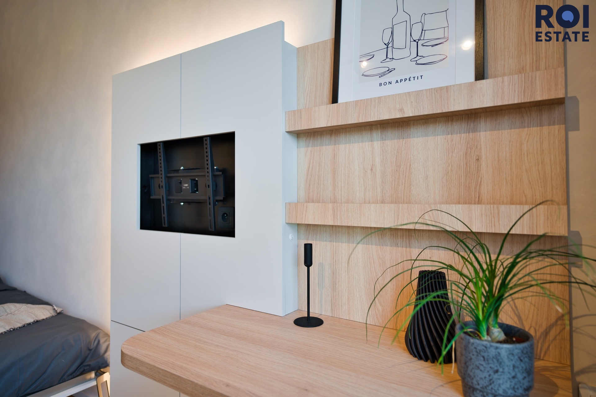 V samém srdci Brna, v oblíbeném projektu Pekárenský dvůr, vznikl prostor, který zaujme každého, kdo hledá spojení designu, funkčnosti a klidu. Tento kompaktní ateliér o velikosti 23 m² je dokonale promyšlený do posledního detailu – každý centimetr tu má svůj smysl.