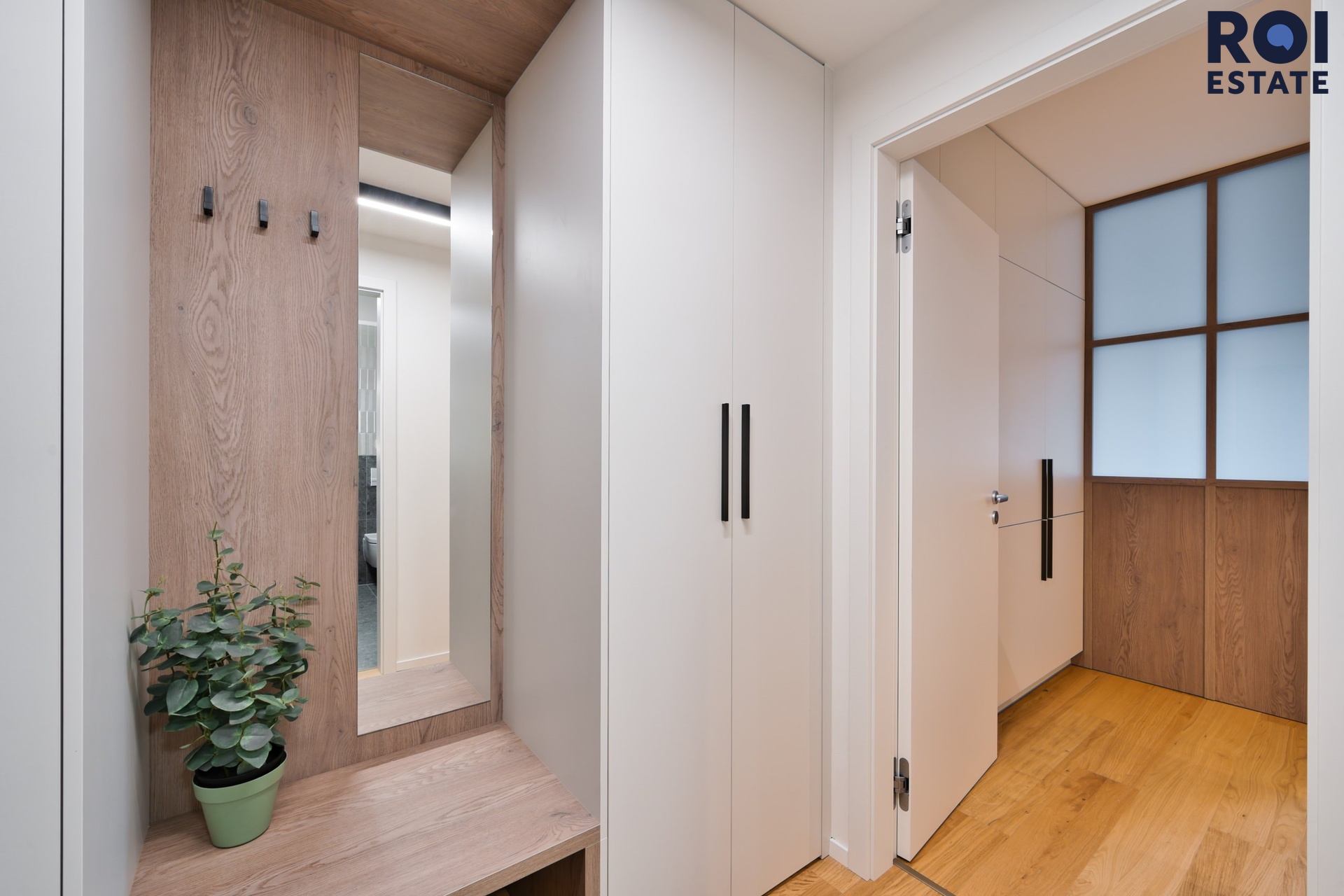 Už při vstupu je cítit, že tady architekt pracoval s myšlenkou wellbeing living – byt působí harmonicky, čistě a lehce. Přesně tím stylem, který člověk chce každý den otevírat po návratu domů.