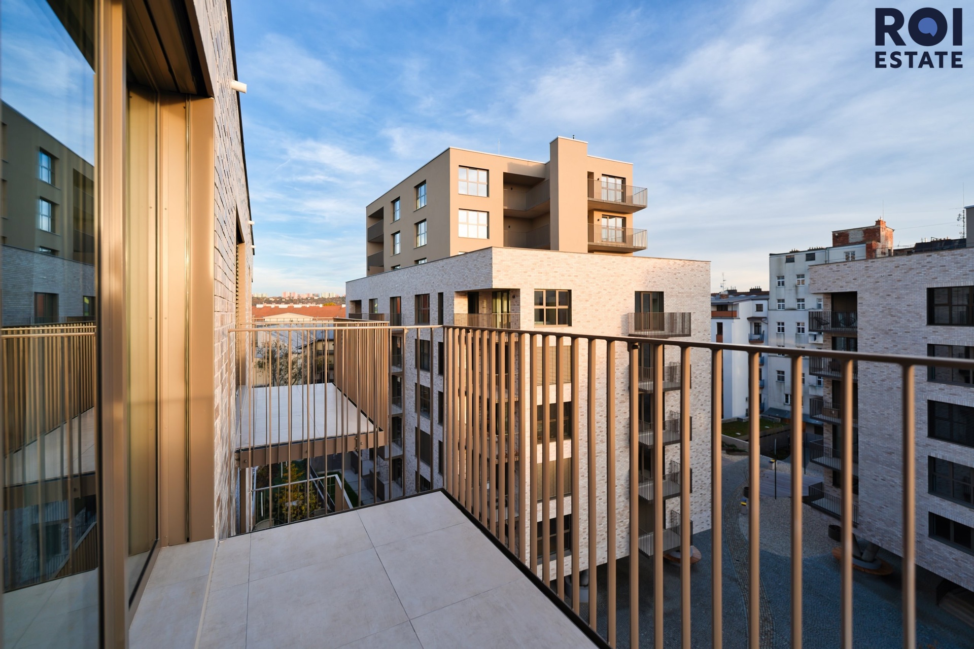 Balkon je prostorný s příjemným výhledem do vnitrobloku projektu. Ideální místo pro večerní relax.