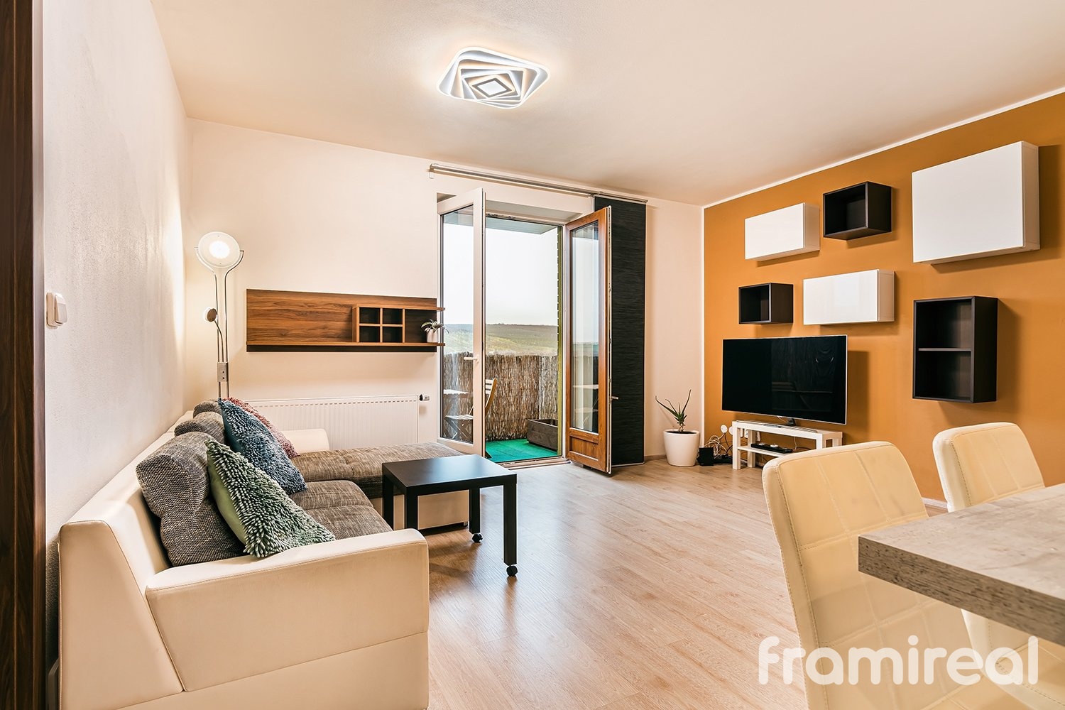 Byt je ve velmi dobrém stavu a nabízí moderní a praktické uspořádání. Obývací pokoj je propojen s moderním kuchyňským koutem, který je plně vybavený a vhodný jak pro každodenní vaření, tak pro příjemné posezení. Samostatná ložnice poskytuje dostatek prostoru pro odpočinek i úložné řešení. K dispozici je také prostorná šatna, která zvyšuje komfort a pomáhá ušetřit místo v ostatních místnostech. Koupelna je vybavena vanou a nabízí příjemné zázemí pro relaxaci. Součástí bytu je i balkón s výhledem do okolí.