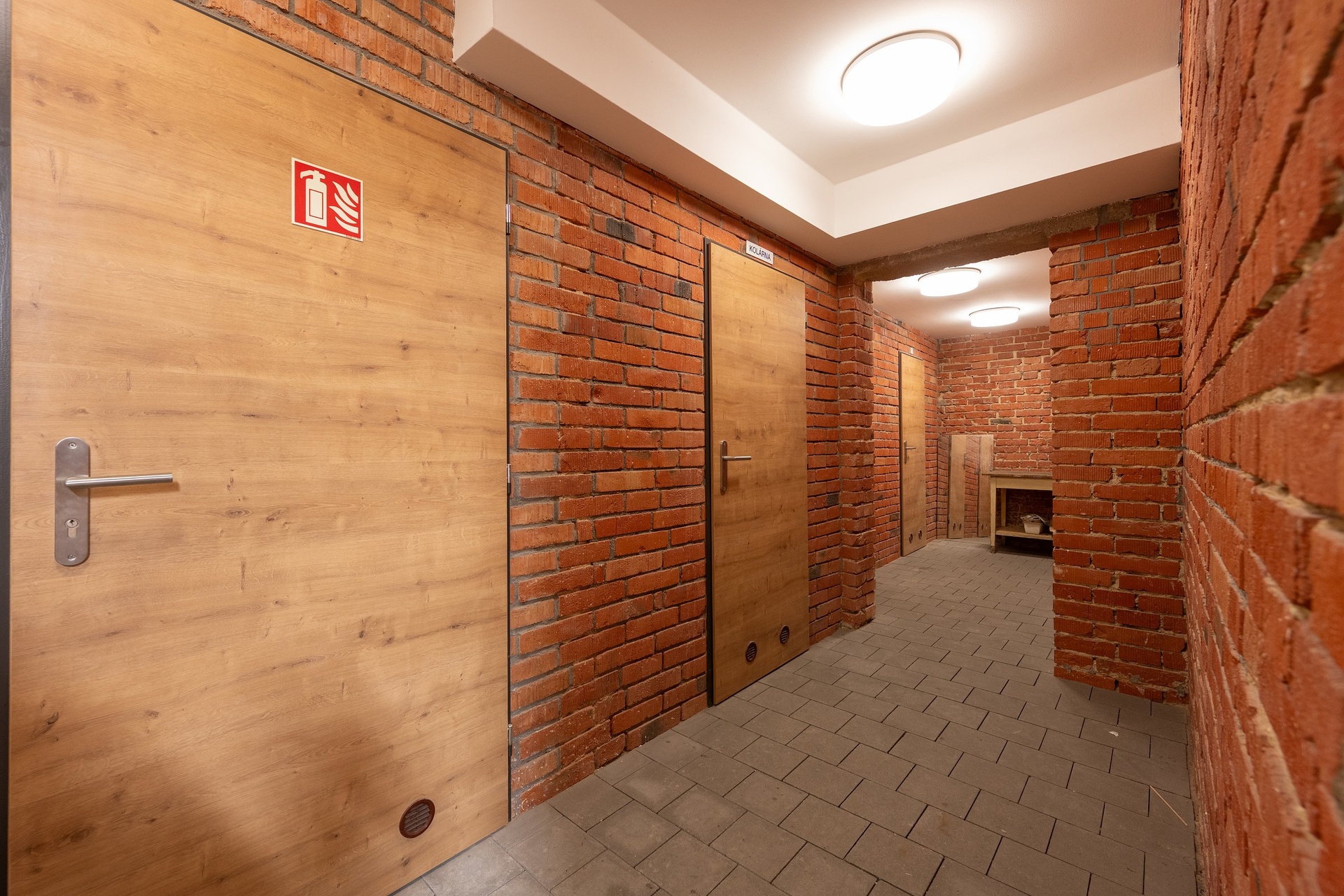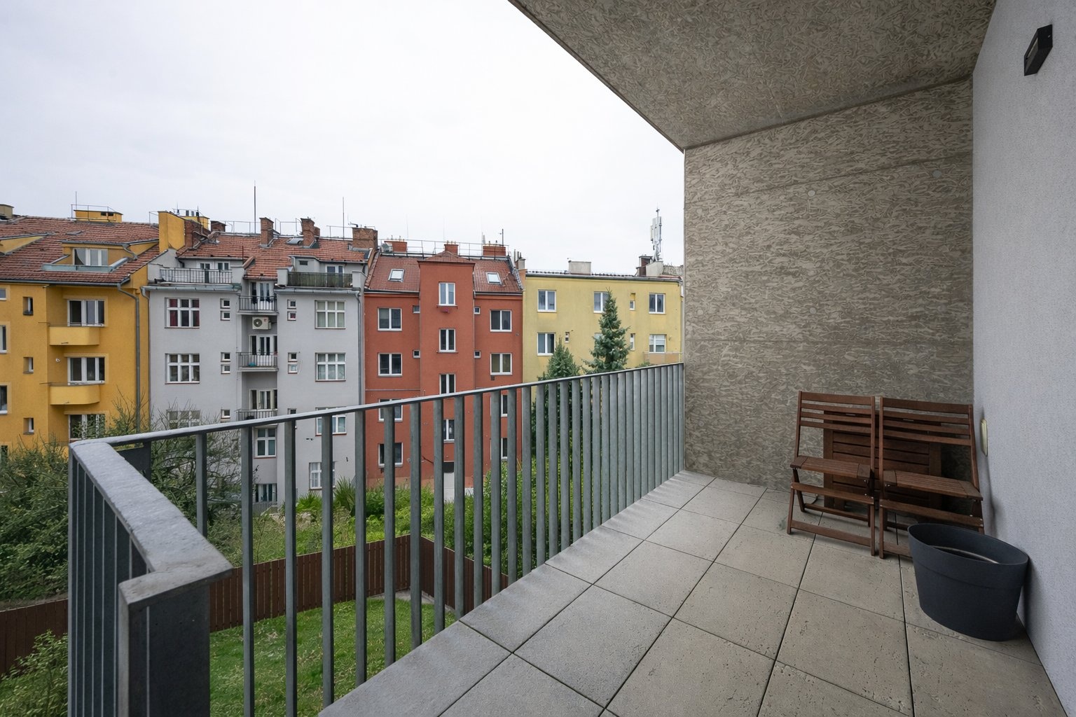 Byt odpovídá moderním požadavkům na bydlení: podlahové elektrické vytápění, sádrové omítky, dýhované bezfalcové dveře Sapeli s magnetickým zámkem, izolační trojskla a elektricky ovládané předokenní rolety ve všech oknech. K bytu náleží sklepní kóje o velikosti 3,7 m². Za domem je k dispozici společná zahrada určená výhradně pro obyvatele domu. Byt je vhodný pro jednotlivce nebo pár hledající kvalitní a klidné bydlení v širším centru města a je volný od 15.2.2026.